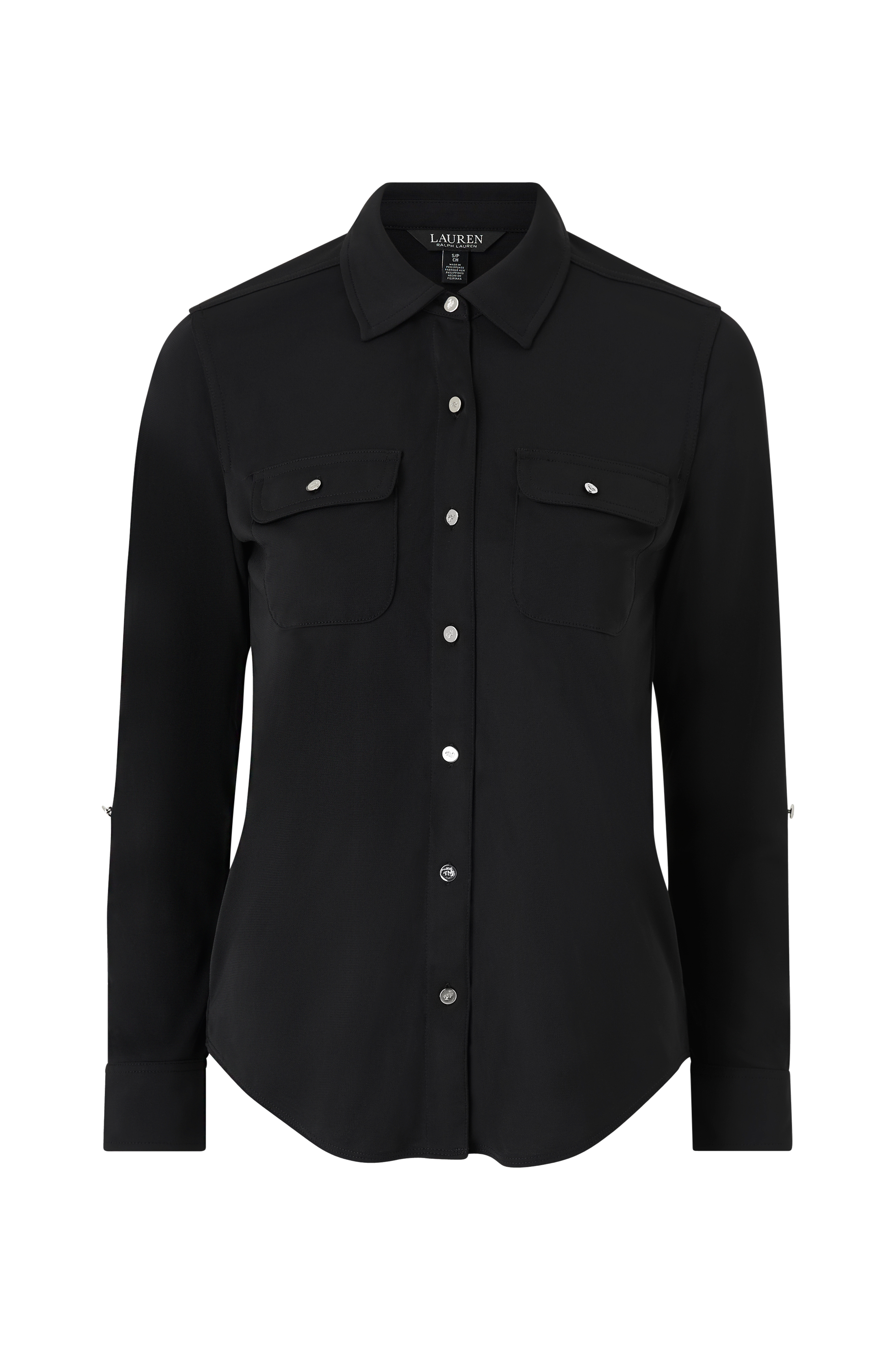 • Strækkvalitet• Sølvfarvede metalknapper med præget logo• To brystlommer med knapbare lommelåg• Manchet med en knap• Ærmerne kan rulles op og lukkes til