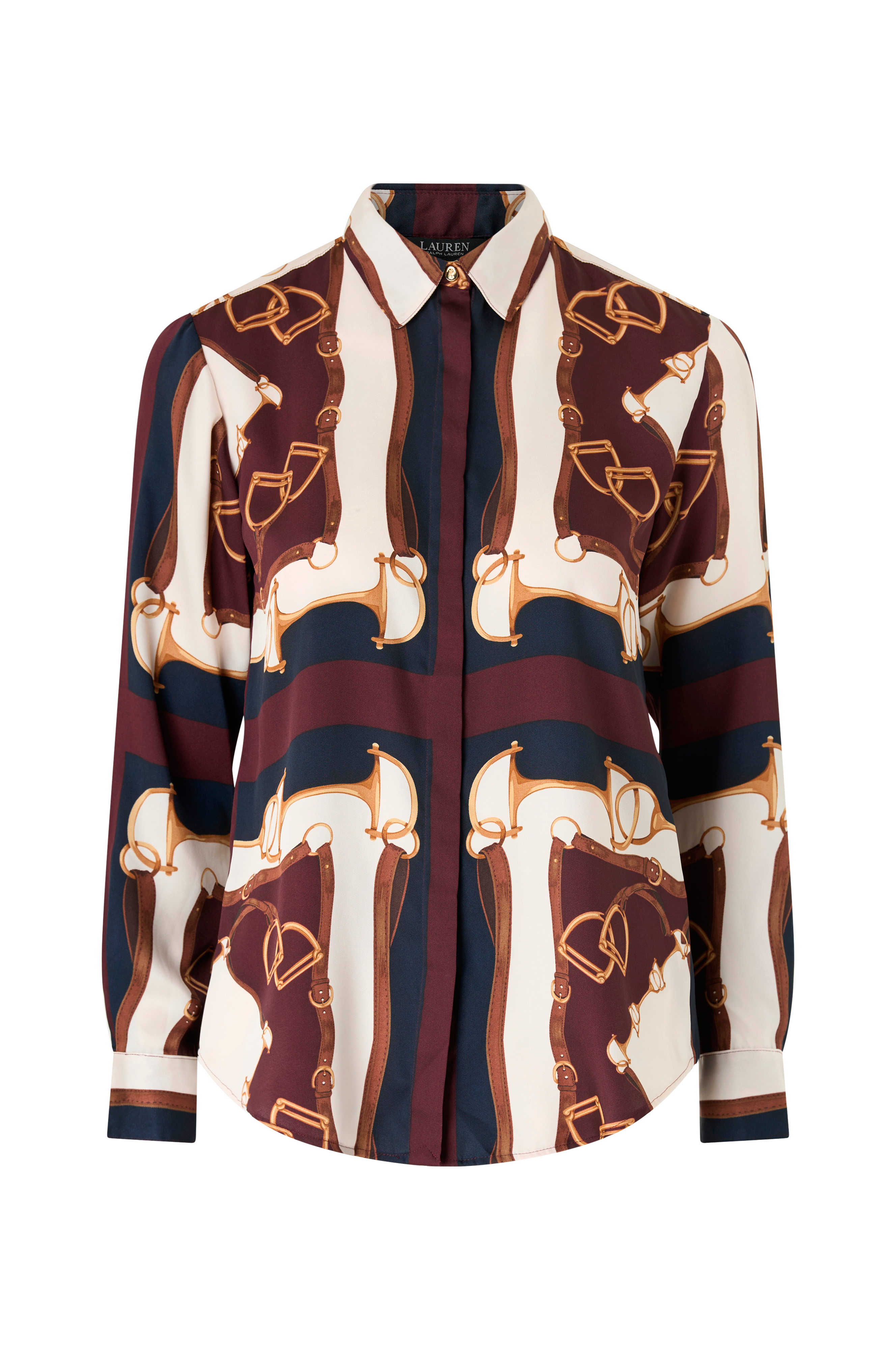 • Tynd, mønstret skjorte• Krave• Manchetter ved manchetterne• Knaplukning• Afrundet søm