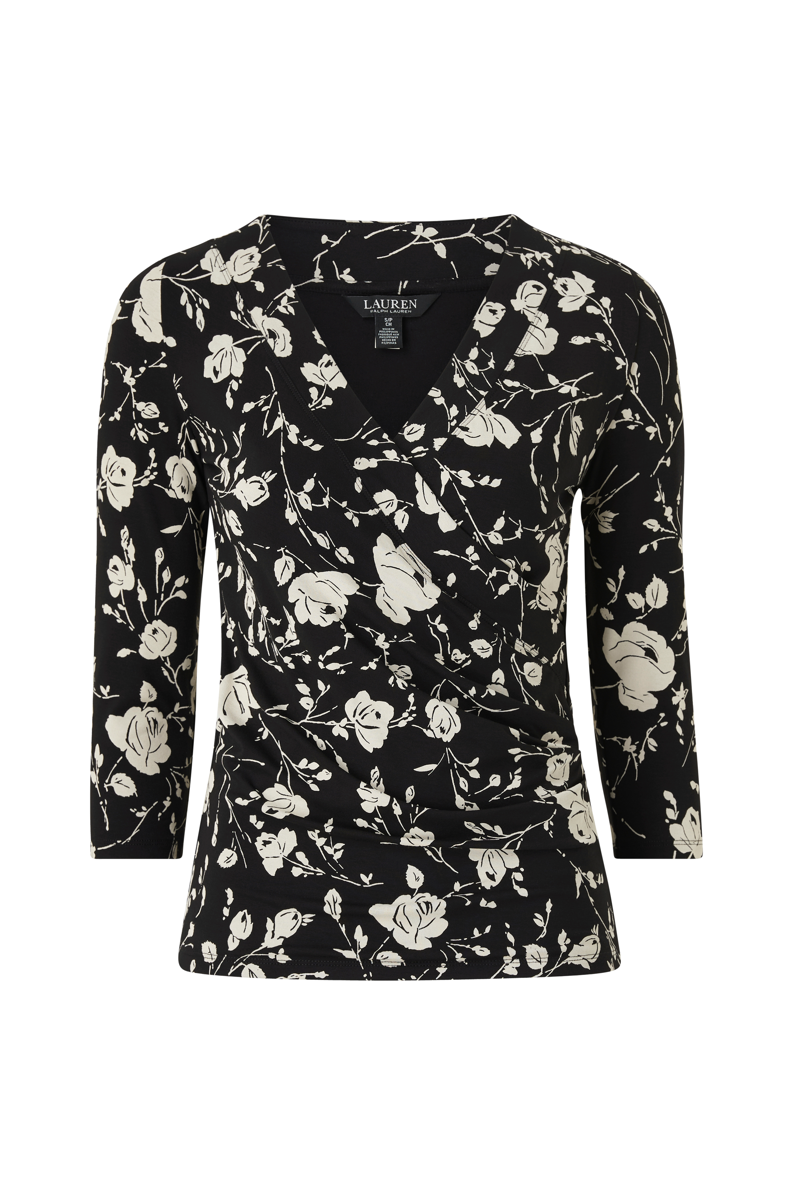 • Top i viskosejersey• Slå-om design• 3/4 lange ærmer• Samling i siden