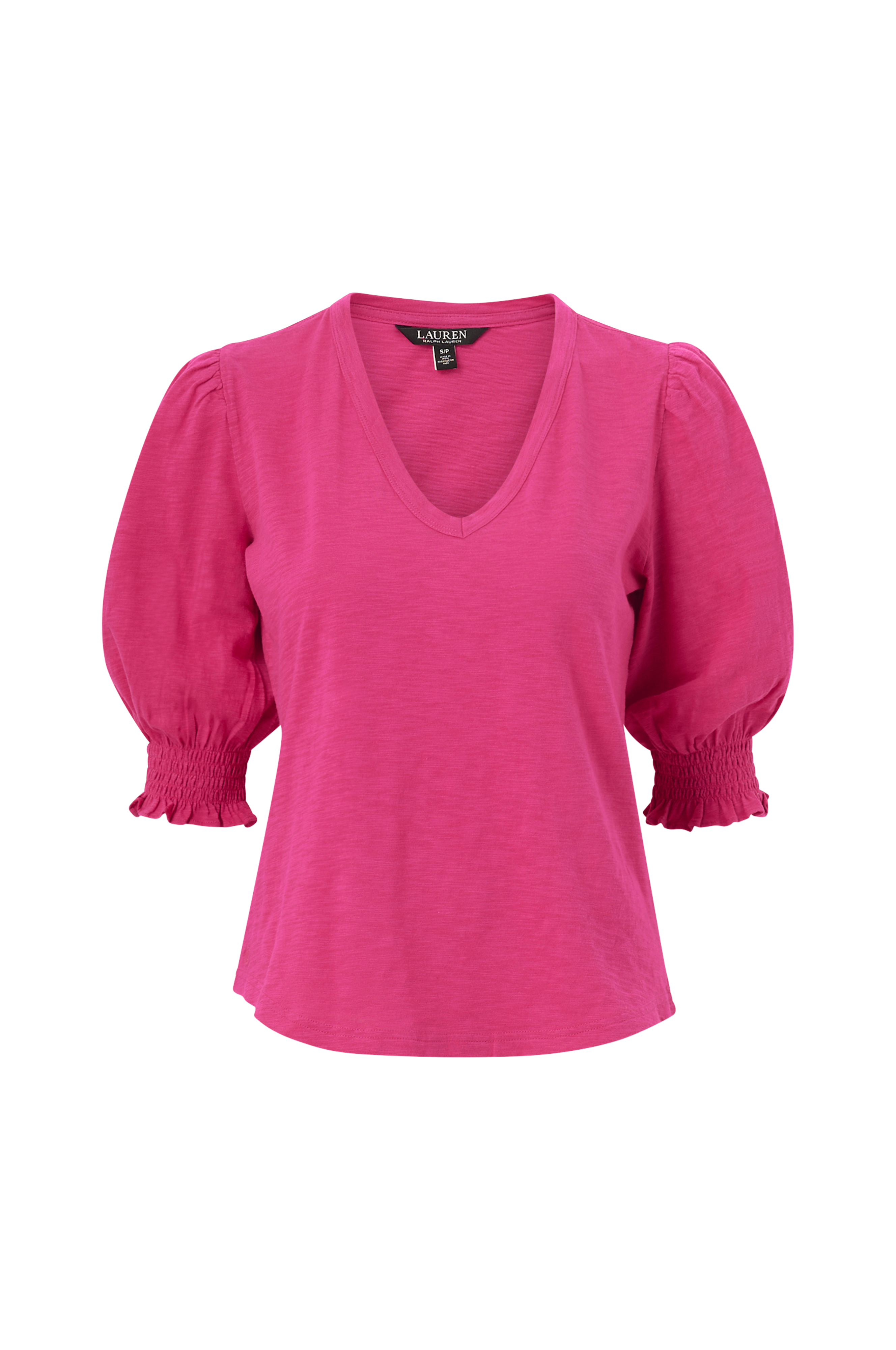 • V-udskæring• Halvlange ballonærmer med smock ved manchetterne• Fremstillet af bomuldsjersey