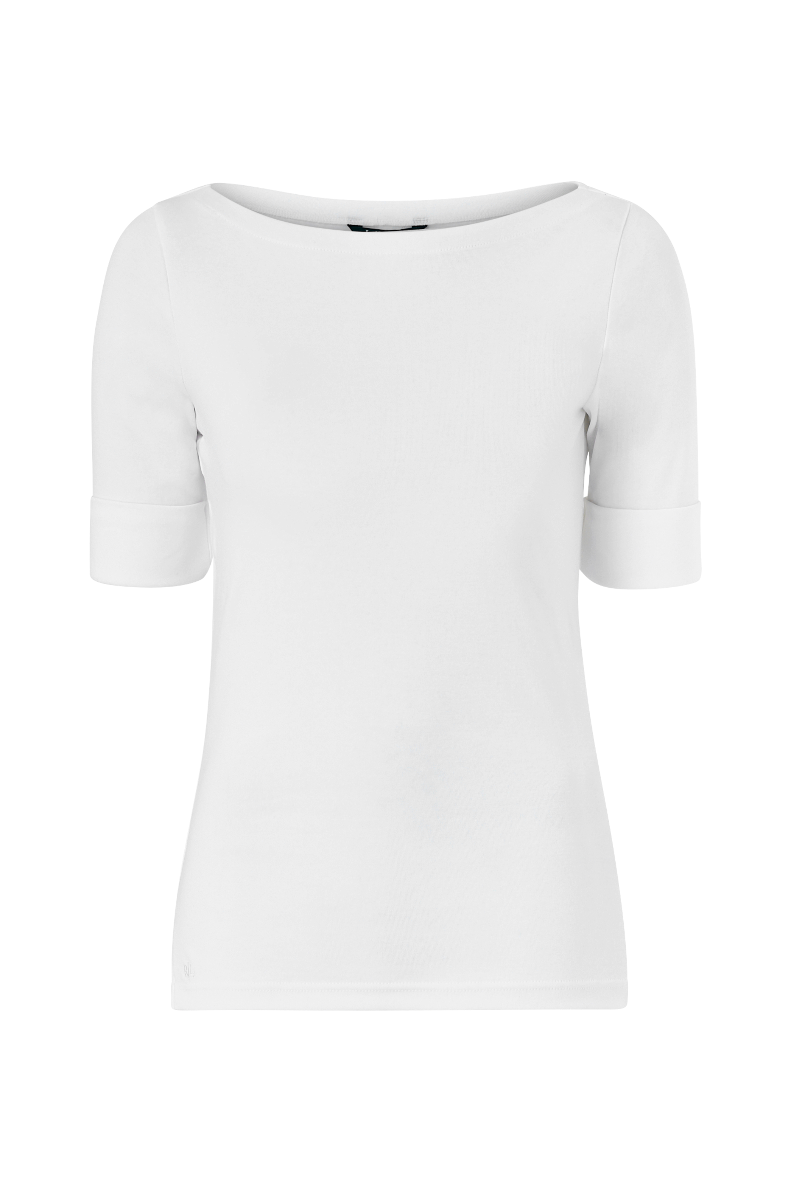Top Judy Elbow Sleeve Knit fra Lauren Ralph Lauren i blød bomuldsjersey. Let figursyet model med halvlange ærmer med bredt opslag. Vid bådudskæring og sideslids forneden.