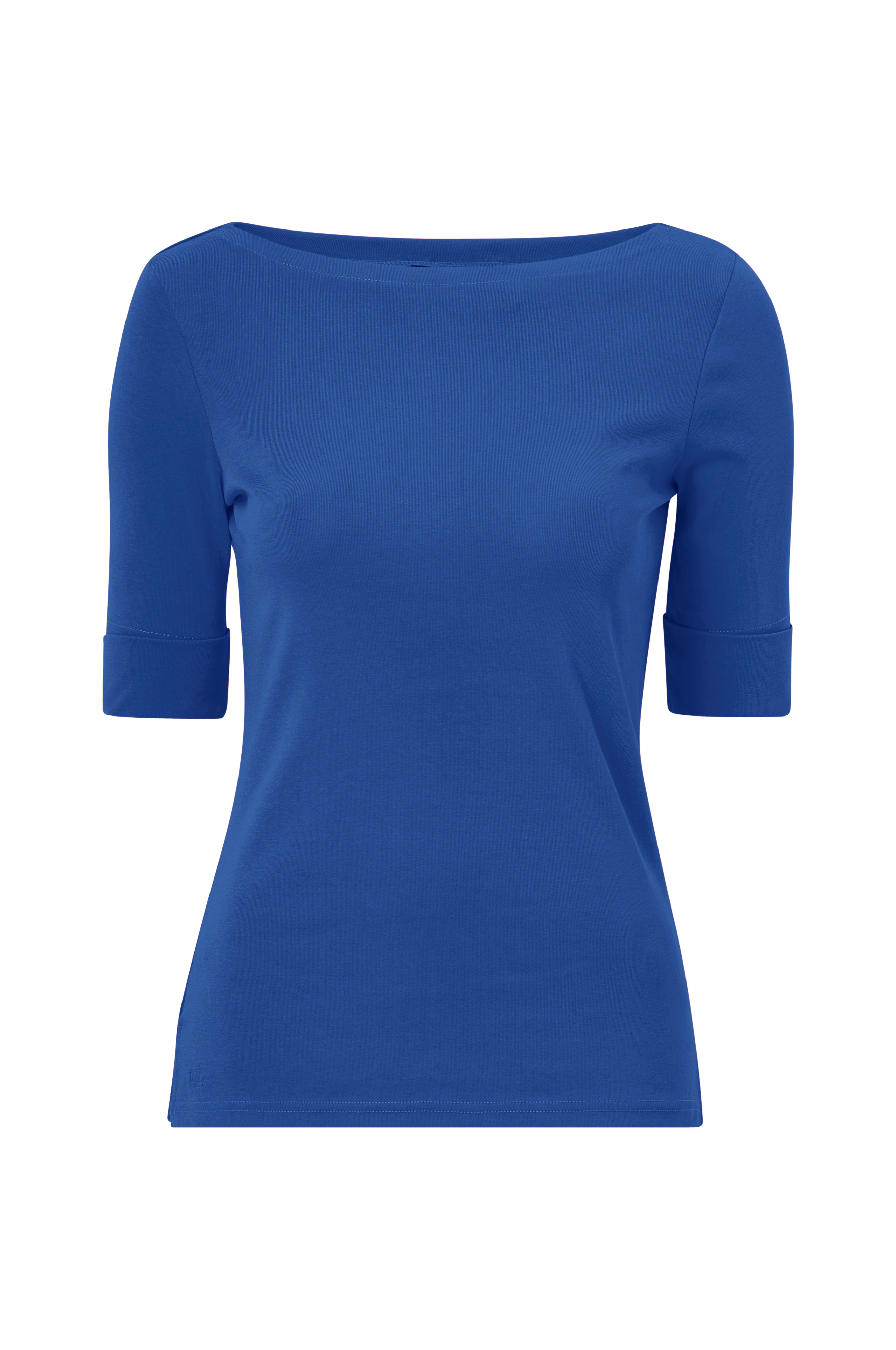 Top Judy Elbow Sleeve Knit fra Lauren Ralph Lauren i blød bomuldsjersey. Let figursyet model med halvlange ærmer med bredt opslag. Vid bådudskæring og sideslids forneden.