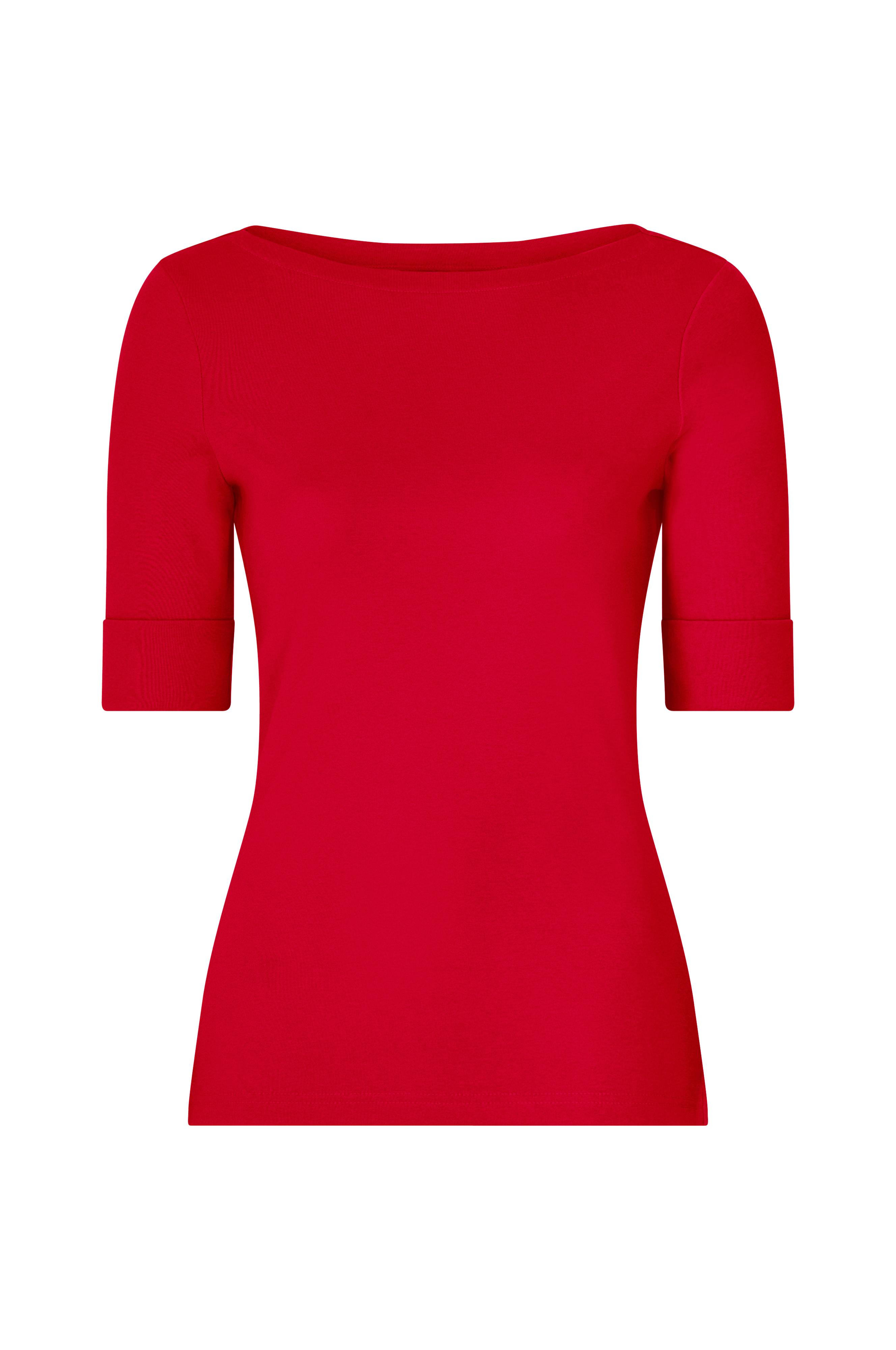 Top Judy Elbow Sleeve Knit fra Lauren Ralph Lauren i blød bomuldsjersey. Let figursyet model med halvlange ærmer med bredt opslag. Vid bådudskæring og sideslids forneden.