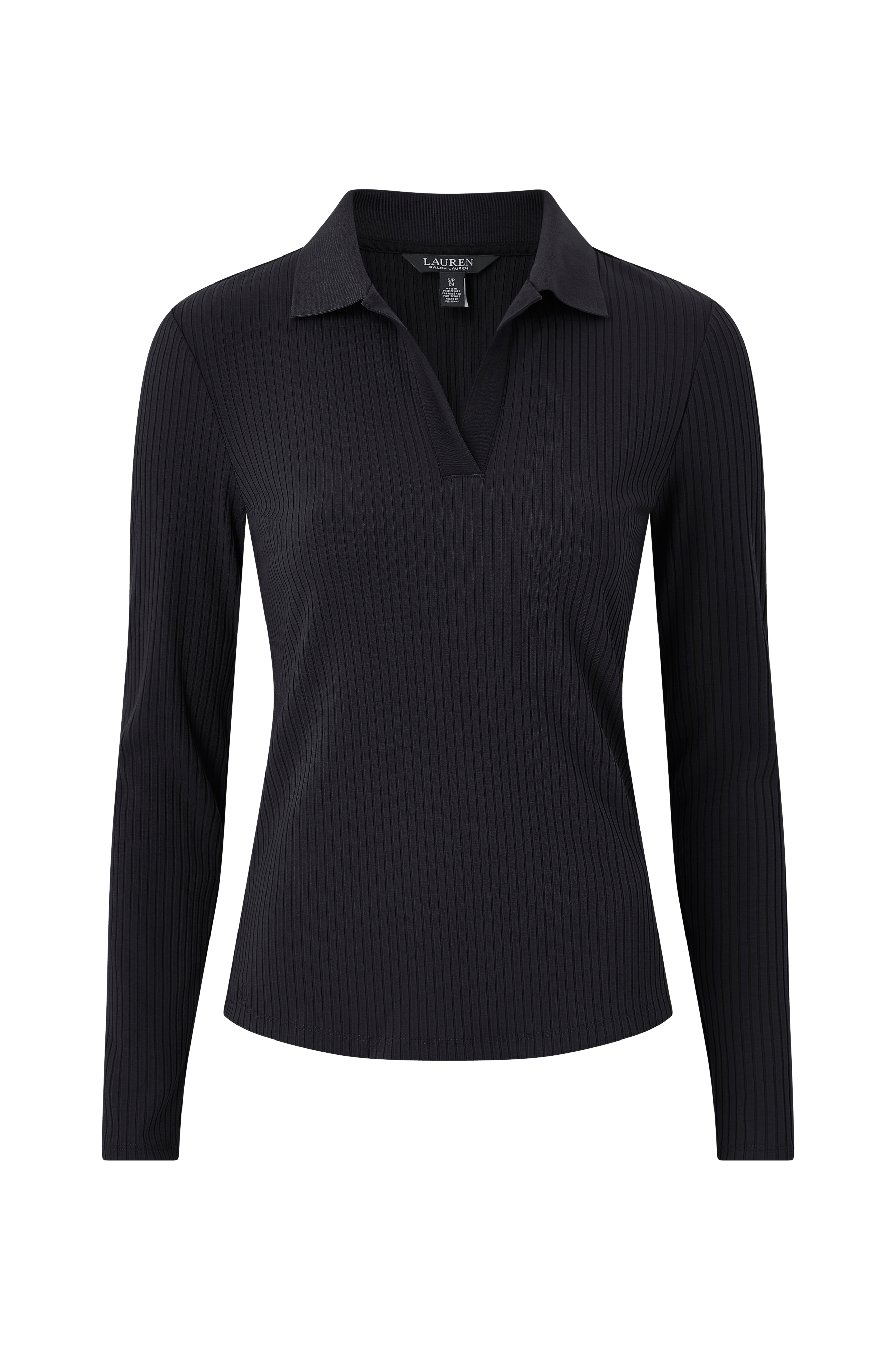 • Ribbet, langærmet top i viskoseblanding• V-formet halsudskæring med krave• Afrundet søm