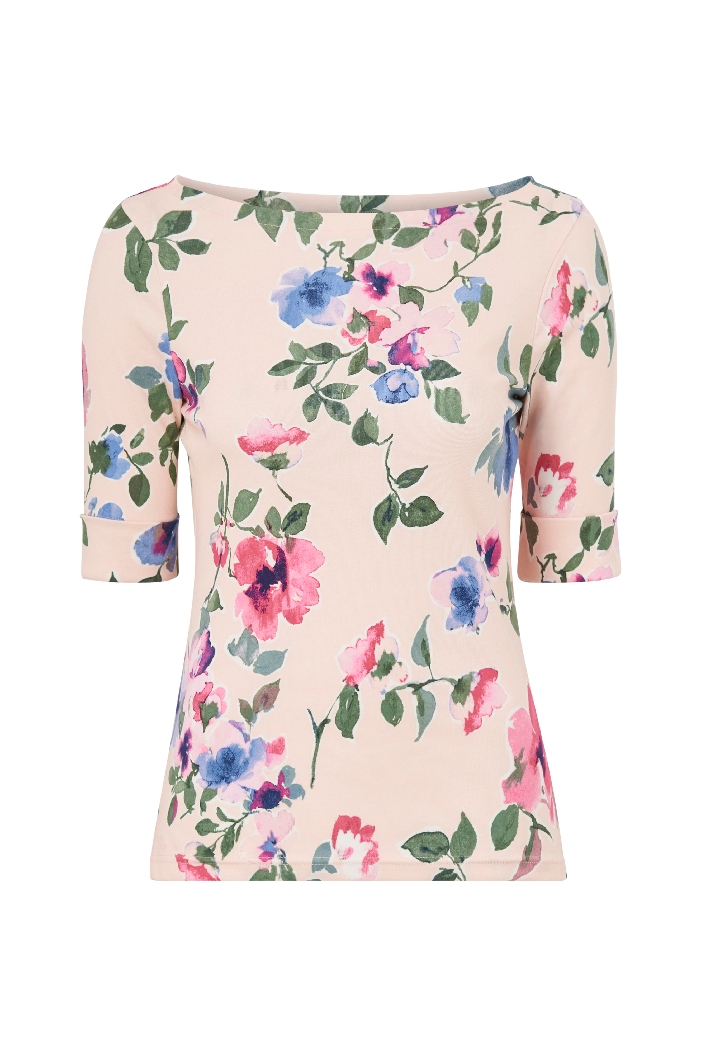 • Bådudskæring• Halvlange ærmer med oprullet• Fremstillet af bomuldsjersey