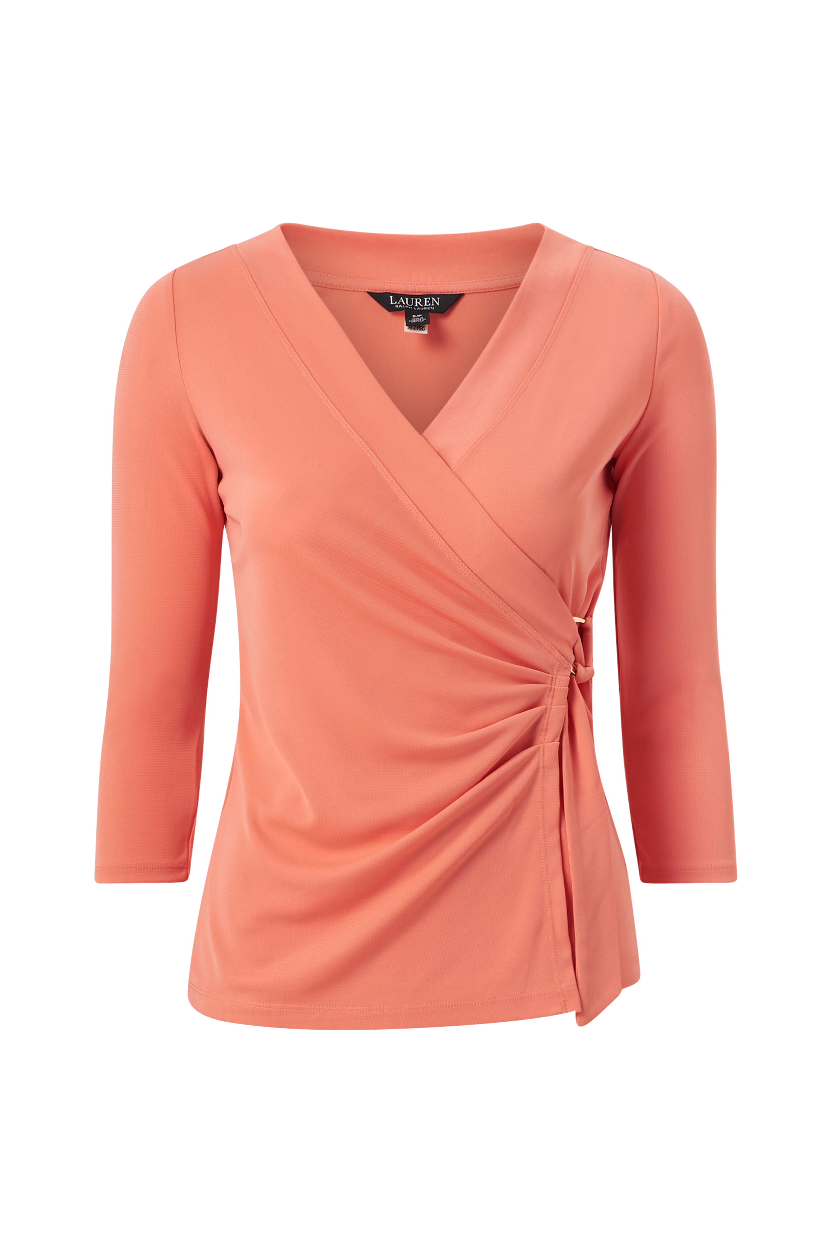 • Slå-om top i strækjersey• Bindebånd i siden med metallukning• Langt ærme