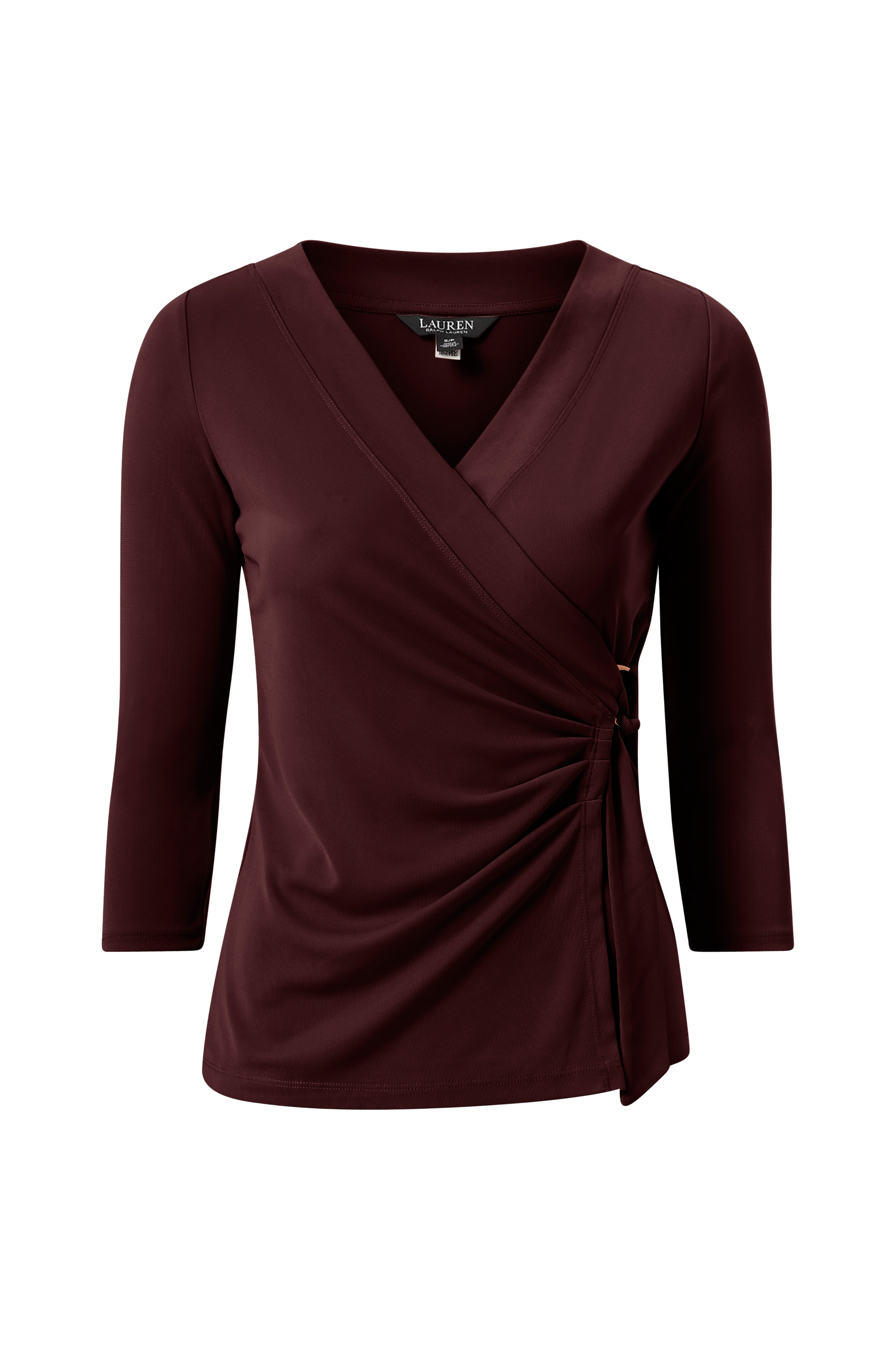 • Slå-om top i strækjersey• Bindebånd i siden med metallukning• Langt ærme