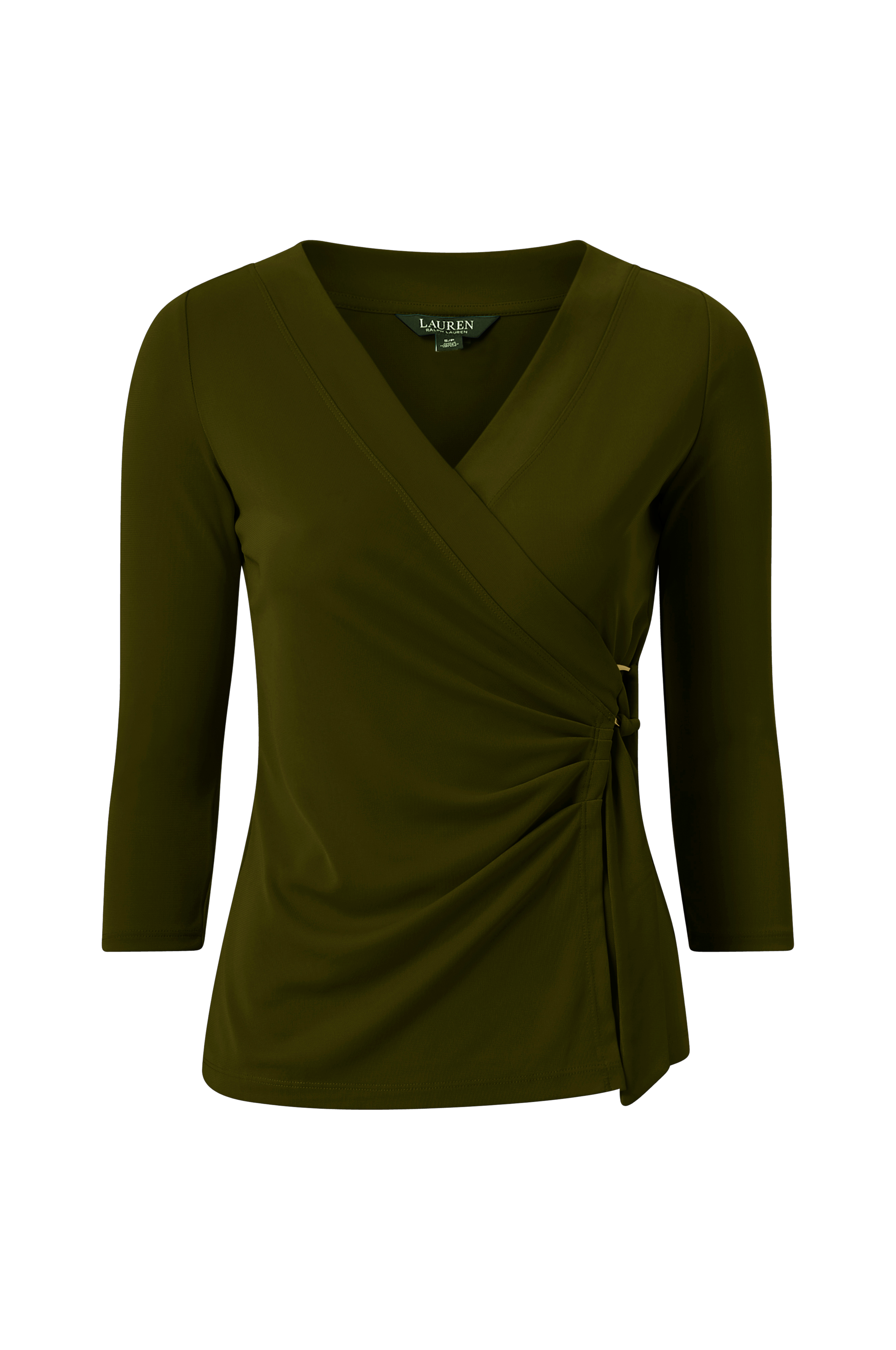 • Slå-om top i strækjersey• Bindebånd i siden med metallukning• Langt ærme