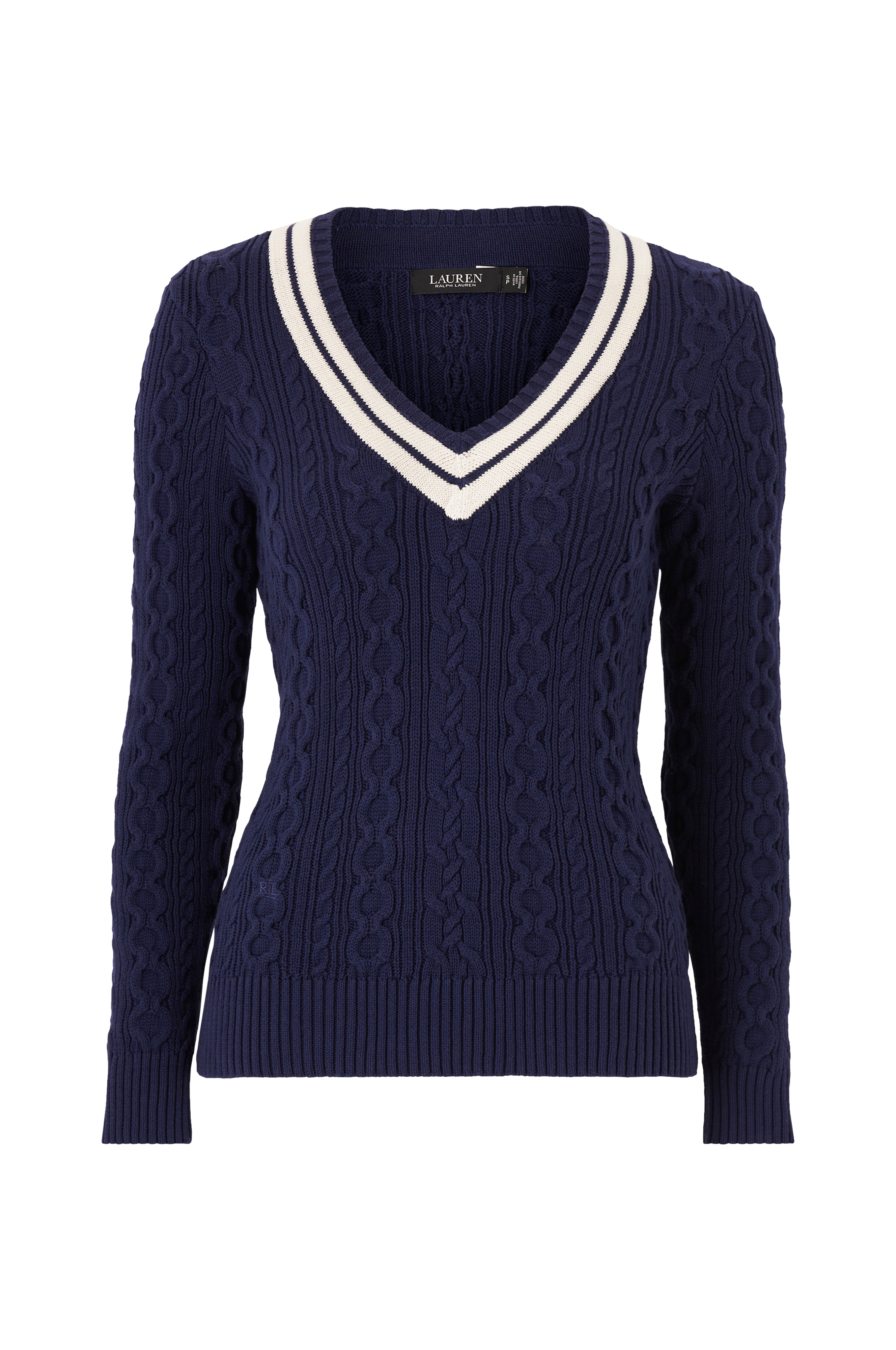 • Strikket trøje i bomuld• V-formet halsudskæring• Ribmanchetter ved manchetterne og nederst