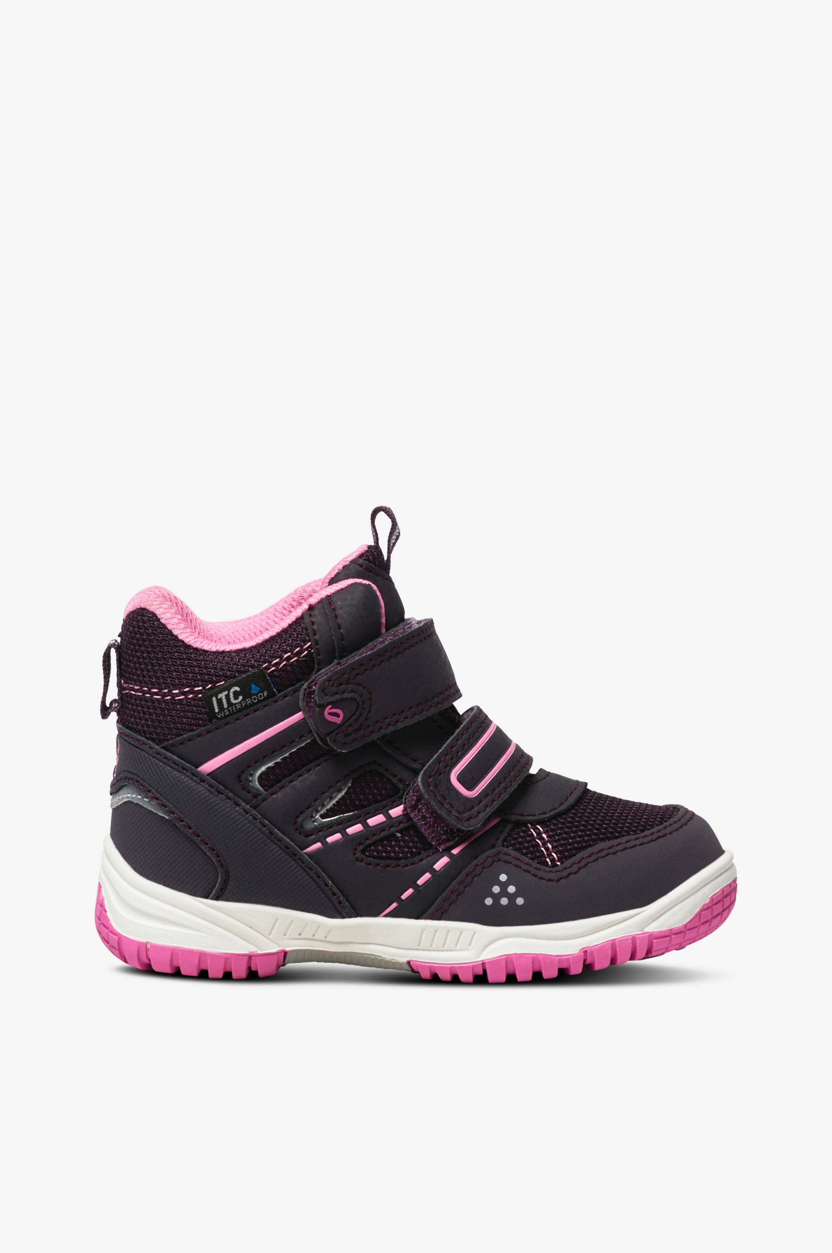 Vandtætte støvler med to praktiske velcroremme. ITC-membran gør støvlen helt vandtæt, og samtidig er den åndbar, så fugten transporteres ud. Forstærkning omkring tåen og hælen. Refleksdetaljer hele vejen rundt.