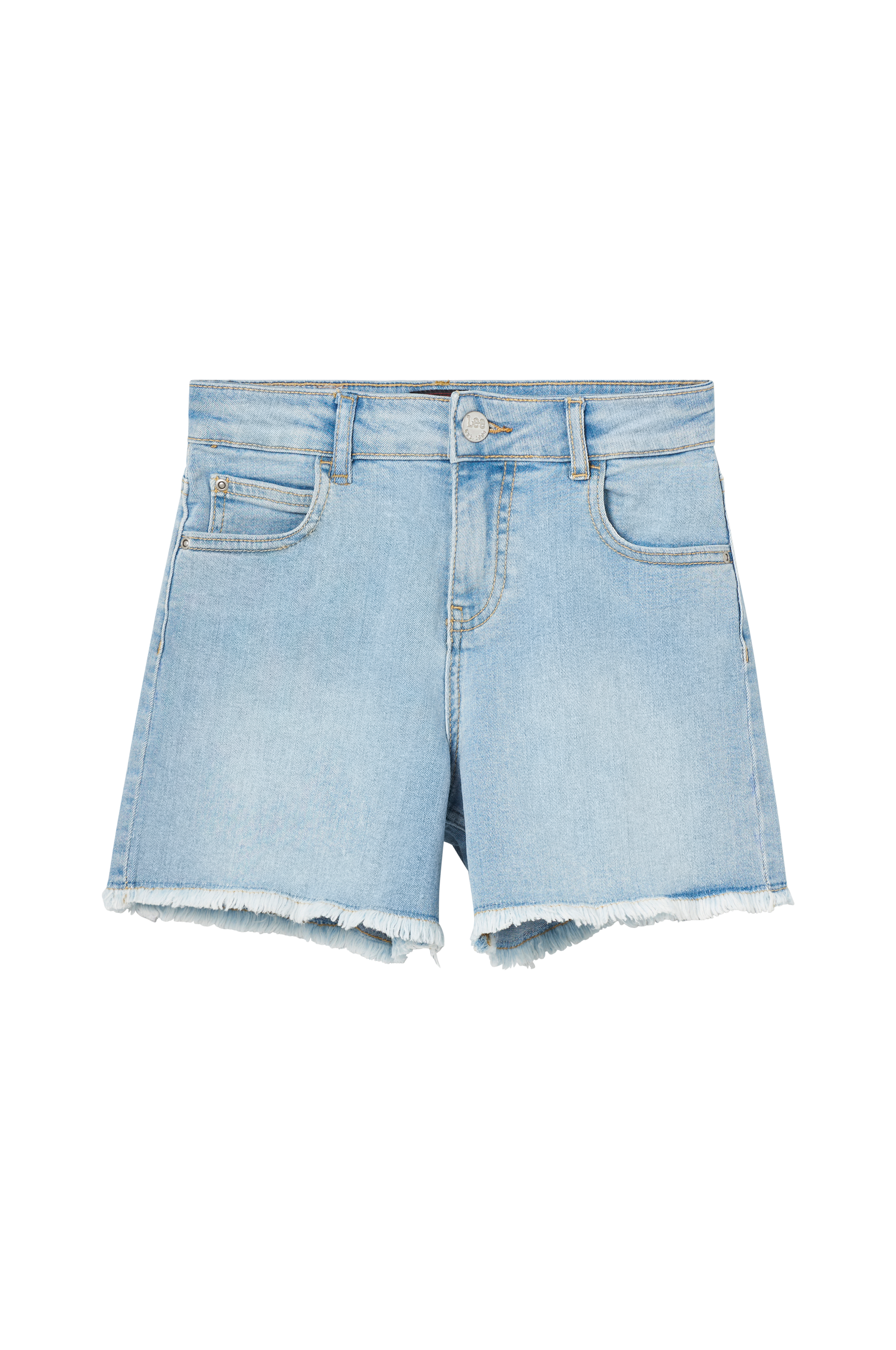 • Shorts i strækdenim• Femlommemodel• Frynser ved enden af benene• Gylp med lynlås• Justérbar talje