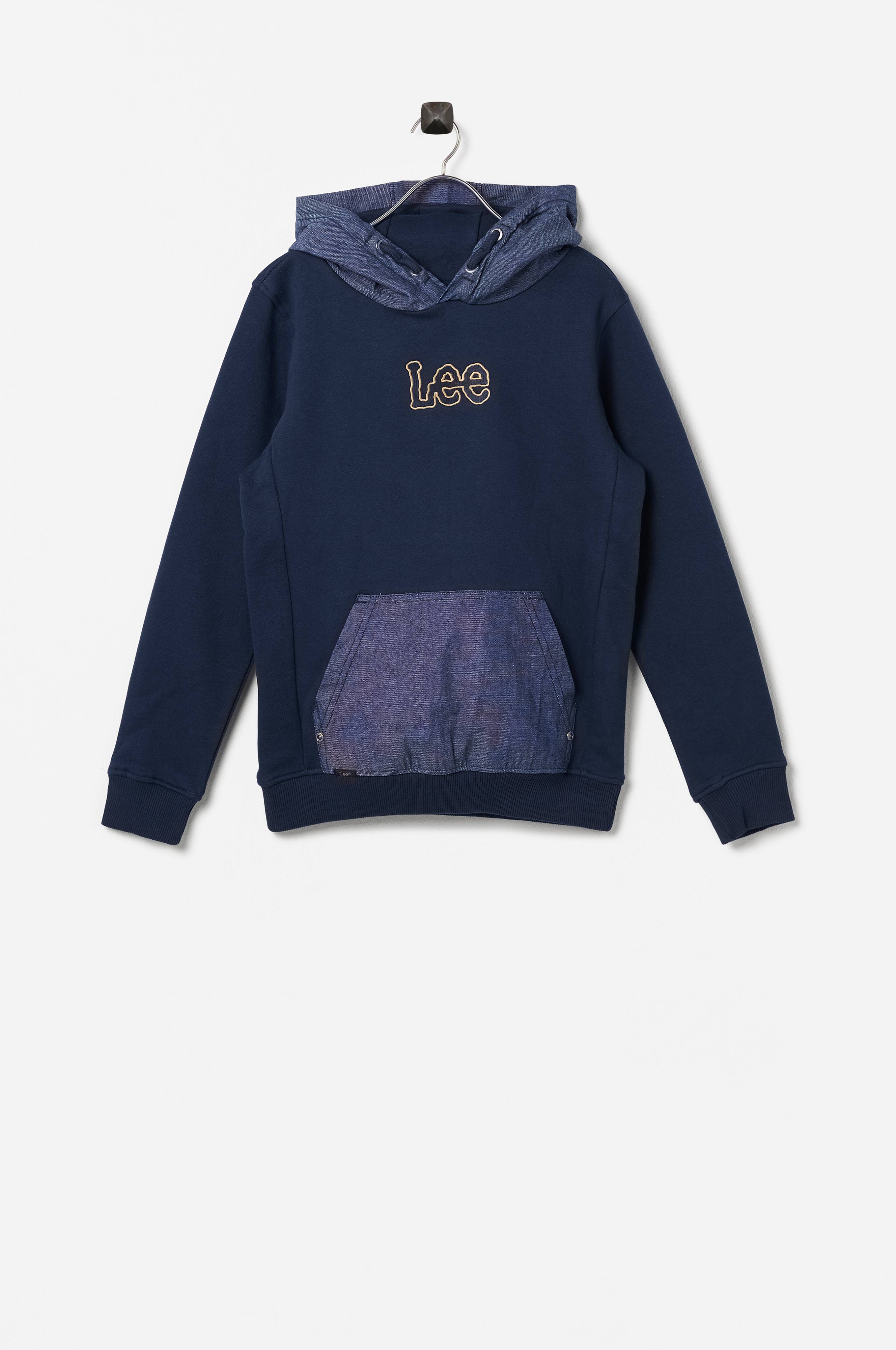 • Blød børstet inderside• Hætte i denim med dekorative stropper• Broderet logo foran• Kængurufrontlomme i denim• Ribmanchetter ved manchetterne og nederst