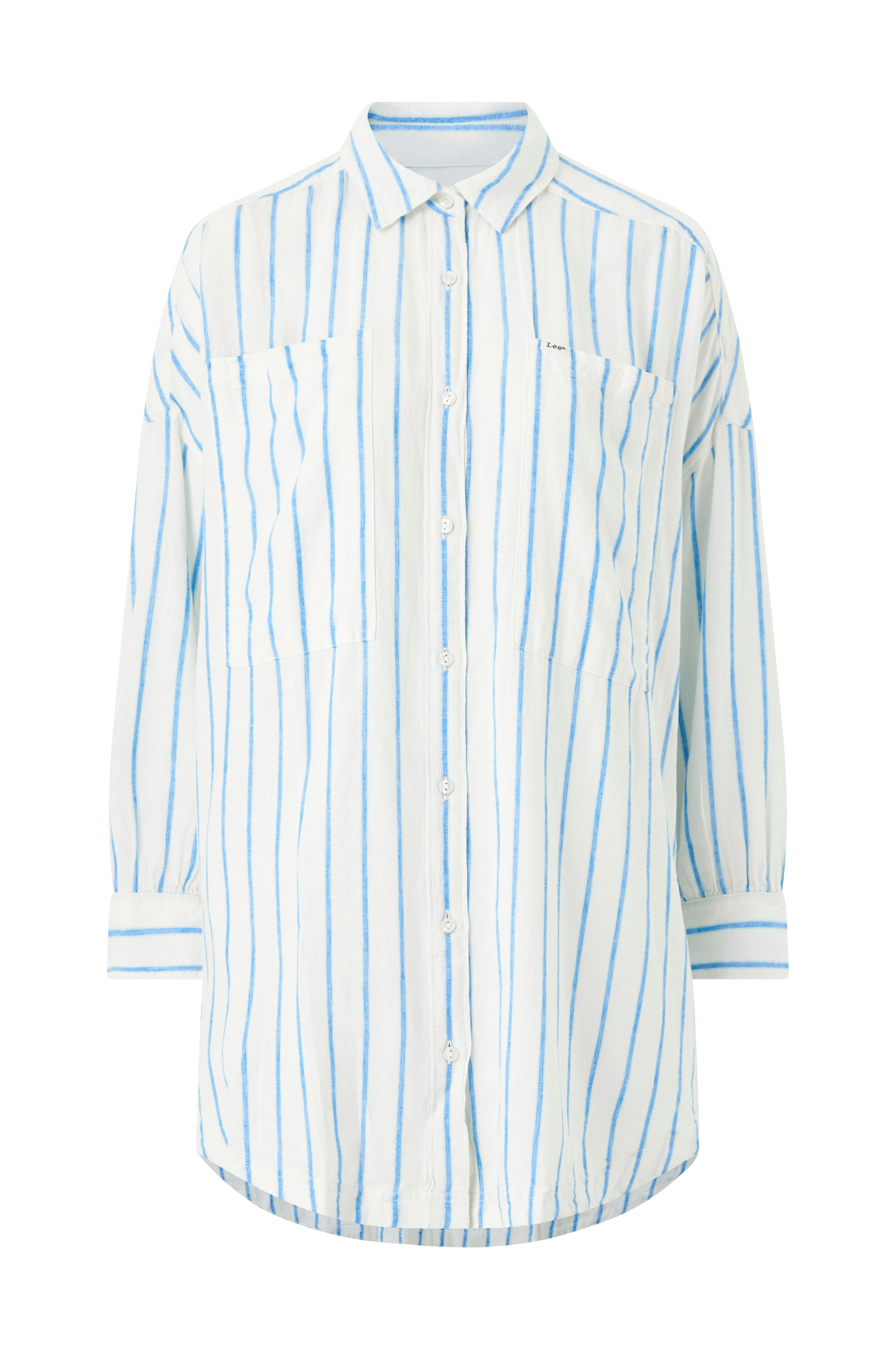 • Stribet skjortekjole i hørblanding• Lange ærmer med manchet• To brystlommer• Knapstolpe hele vejen frem• Afrundet søm• Længde: 92 cm i størrelse S