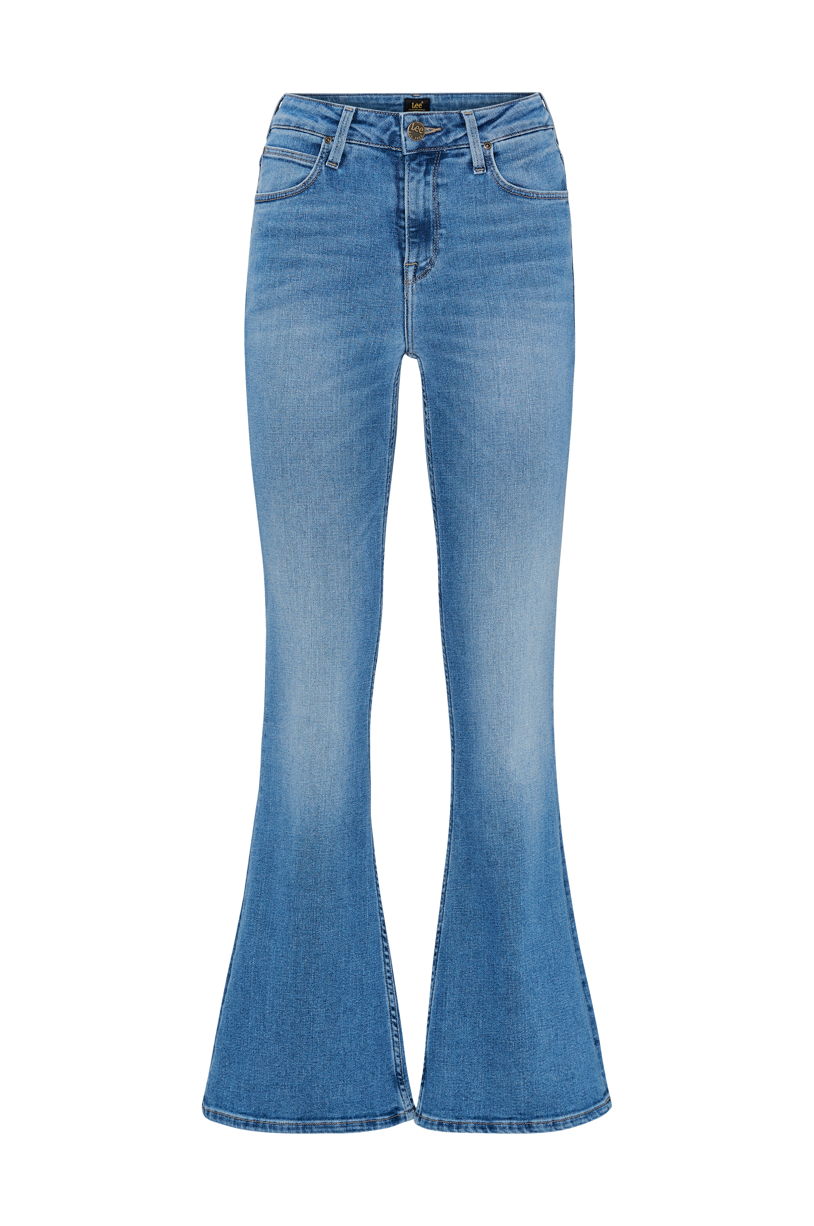 Jeans Breese Flare fra Lee i stretchdenim med smal pasform og A-formet benkant fra knæet. 5-lommemodel med lynlås i gylpen.