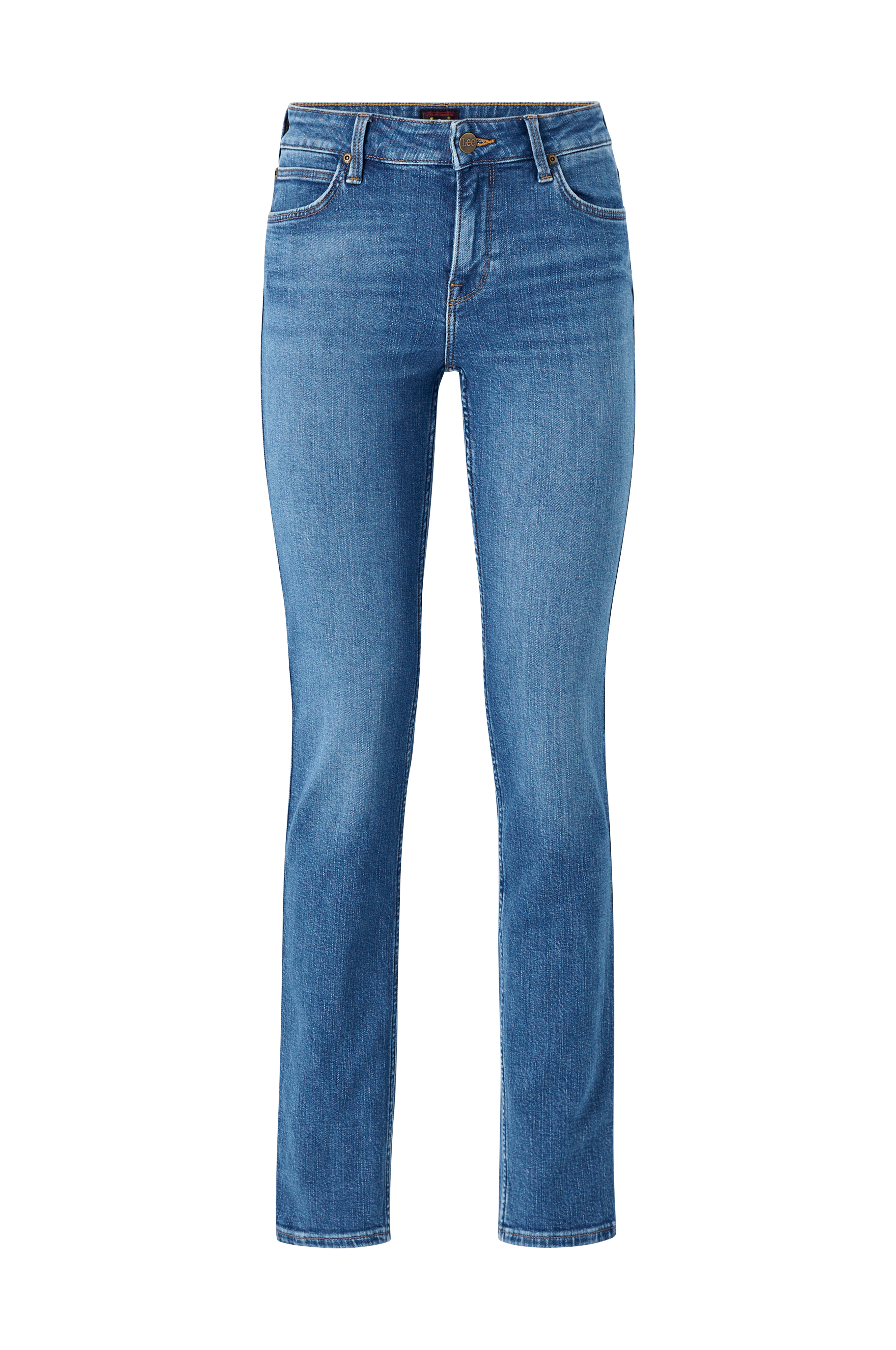 Jeans Elly Slim fra Lee i smidig stretchdenim. Model med smal pasform, smalle lår og lige ben. Klassisk 5-lommemodel med pyntesyninger og lynlås i gylpen. Fodvidde ca. 30 cm.
