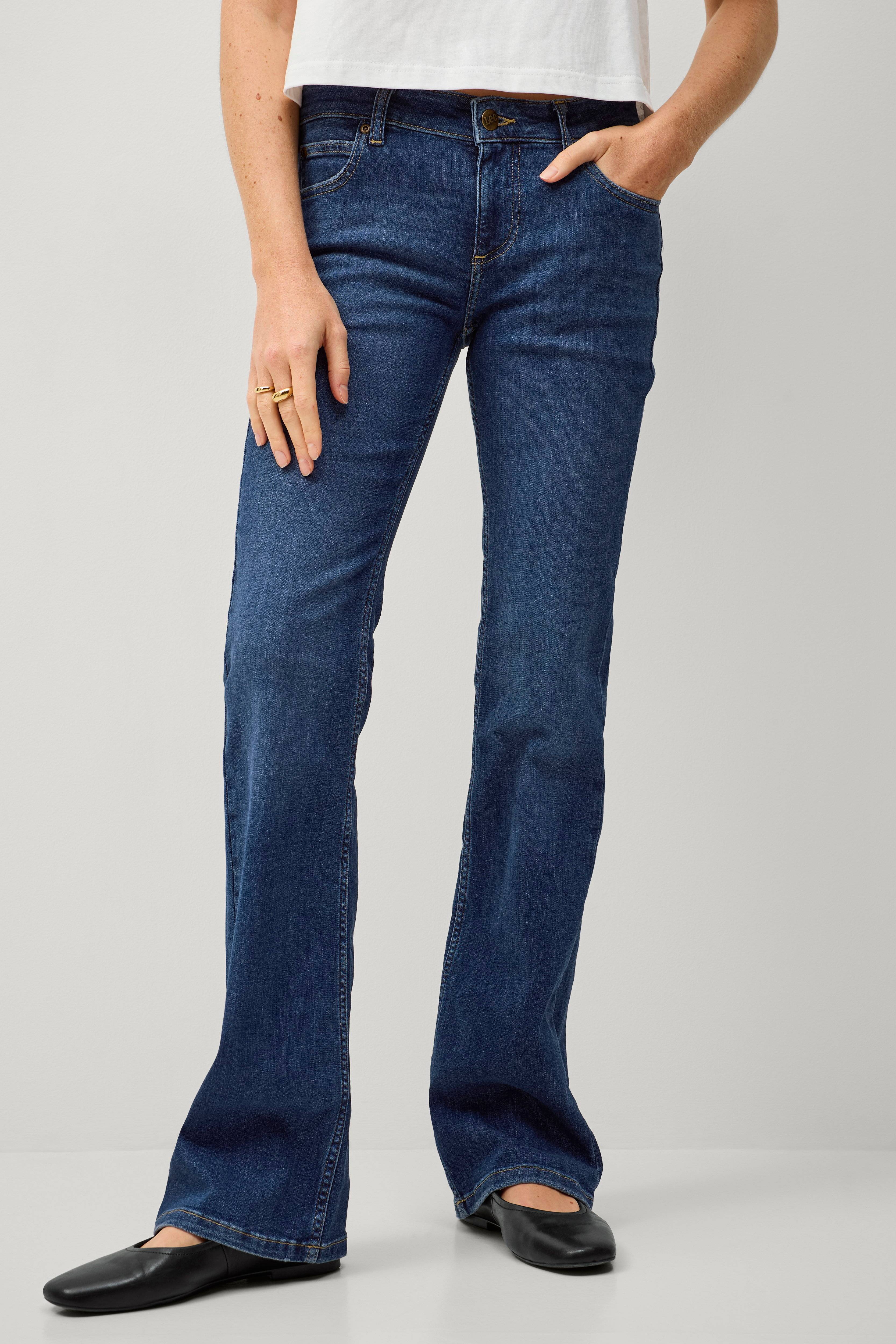 Modellen er 174 cm høj og bærer en str. W27/L33