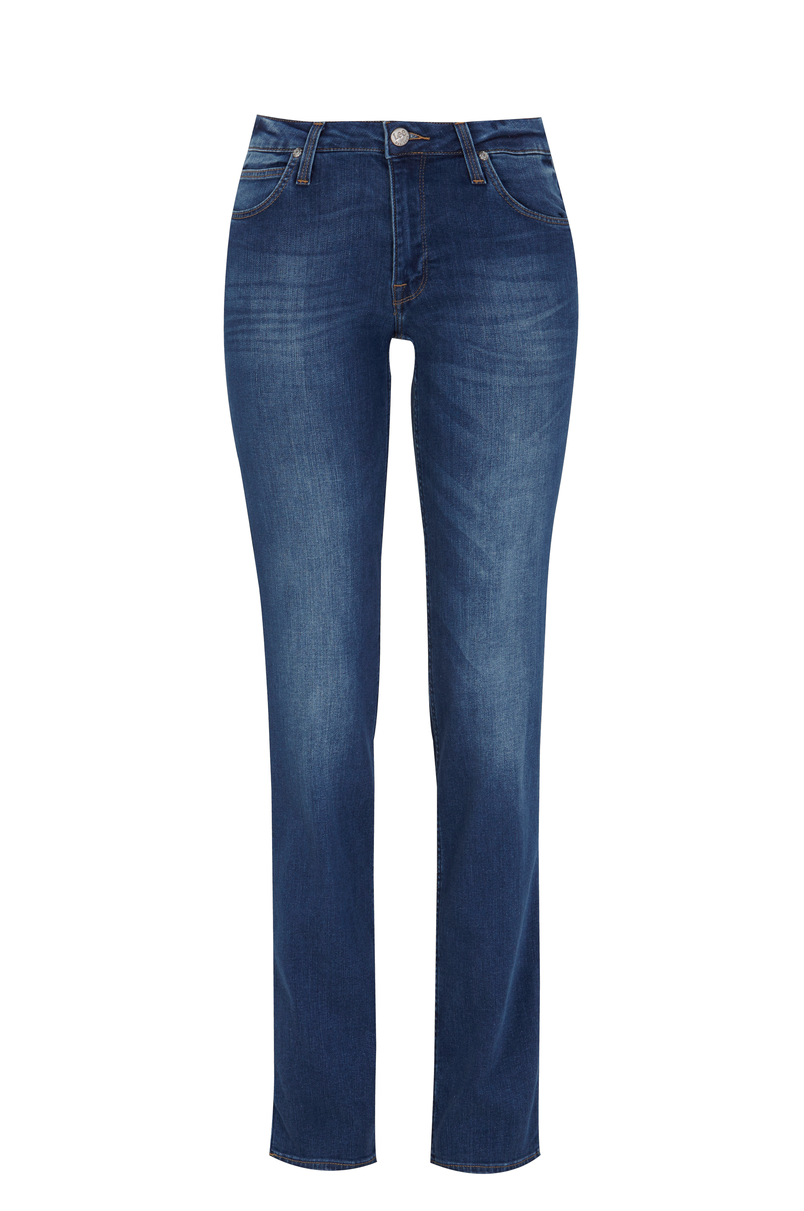 Jeans Marion Straight fra Lee. Klassisk 5-lommemodel med pyntestukne sømme og lige ben samt lynlås i gylpen. Fodvidde ca. 34 cm.
