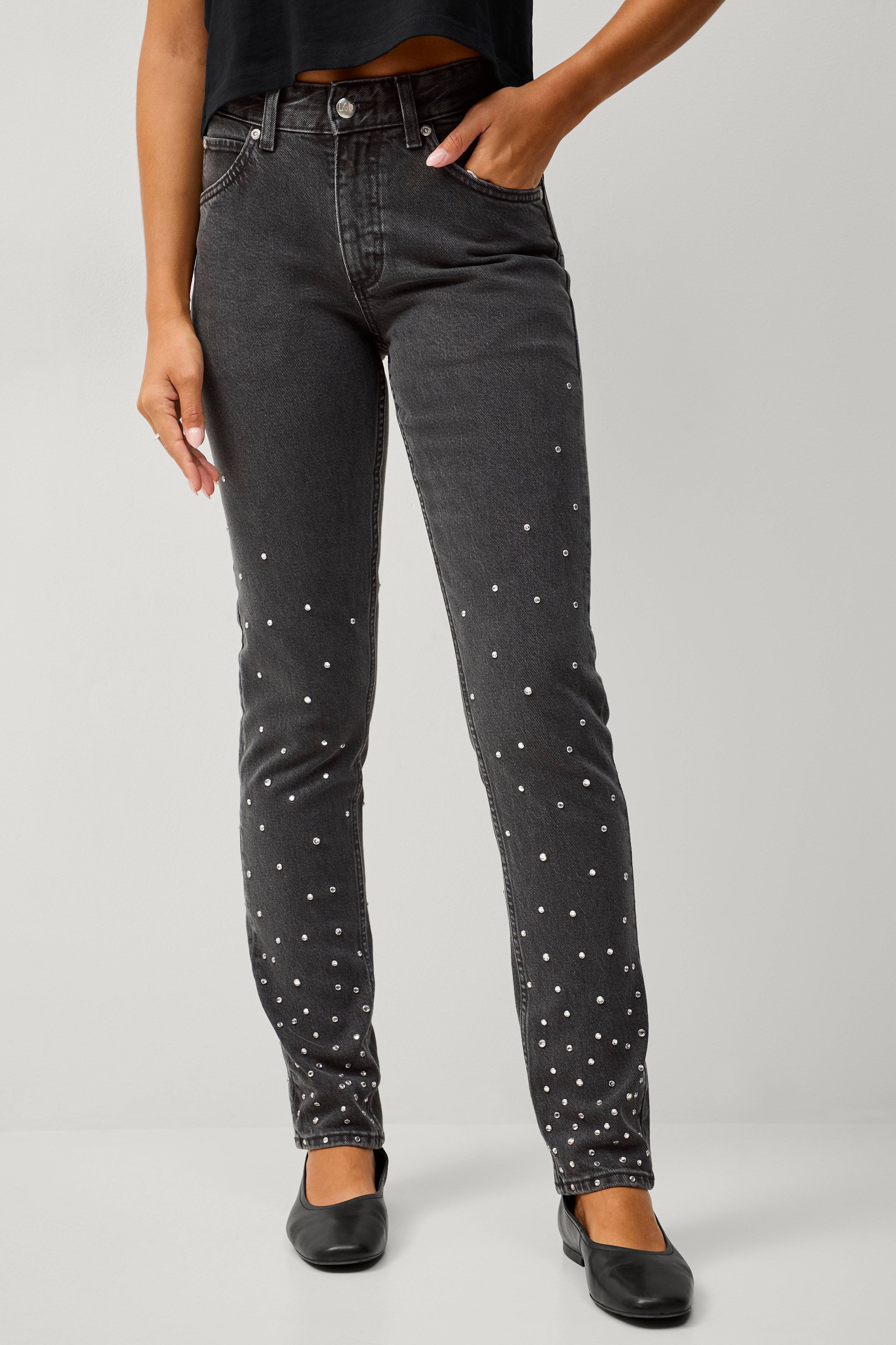 Modellen er 175 cm høj og bærer en str. W27/L33