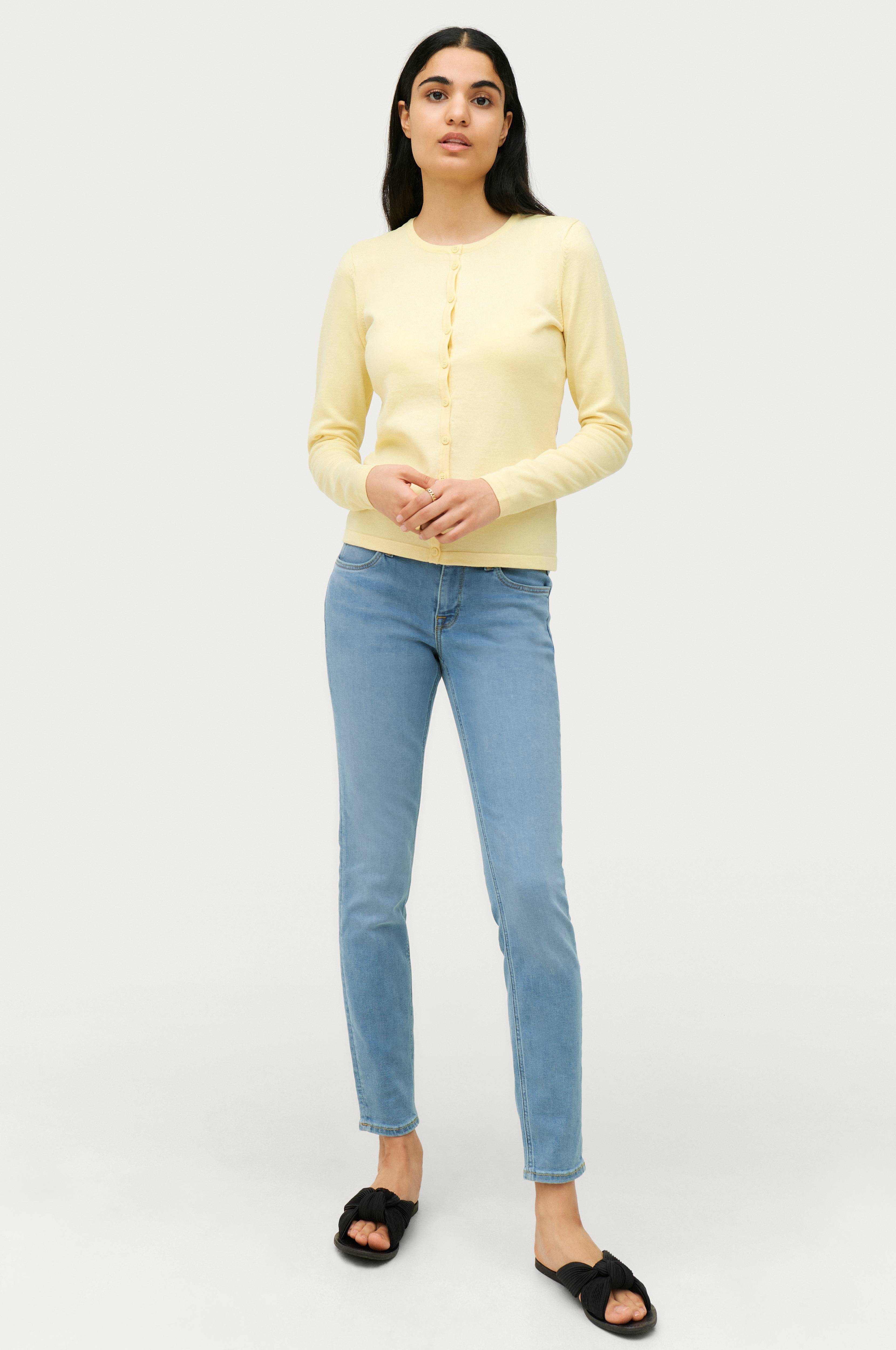 Behageligt materiale, lidt stretch, for en gangs skyld den rigtige nuance af jeans, god størrelse og benlængde.