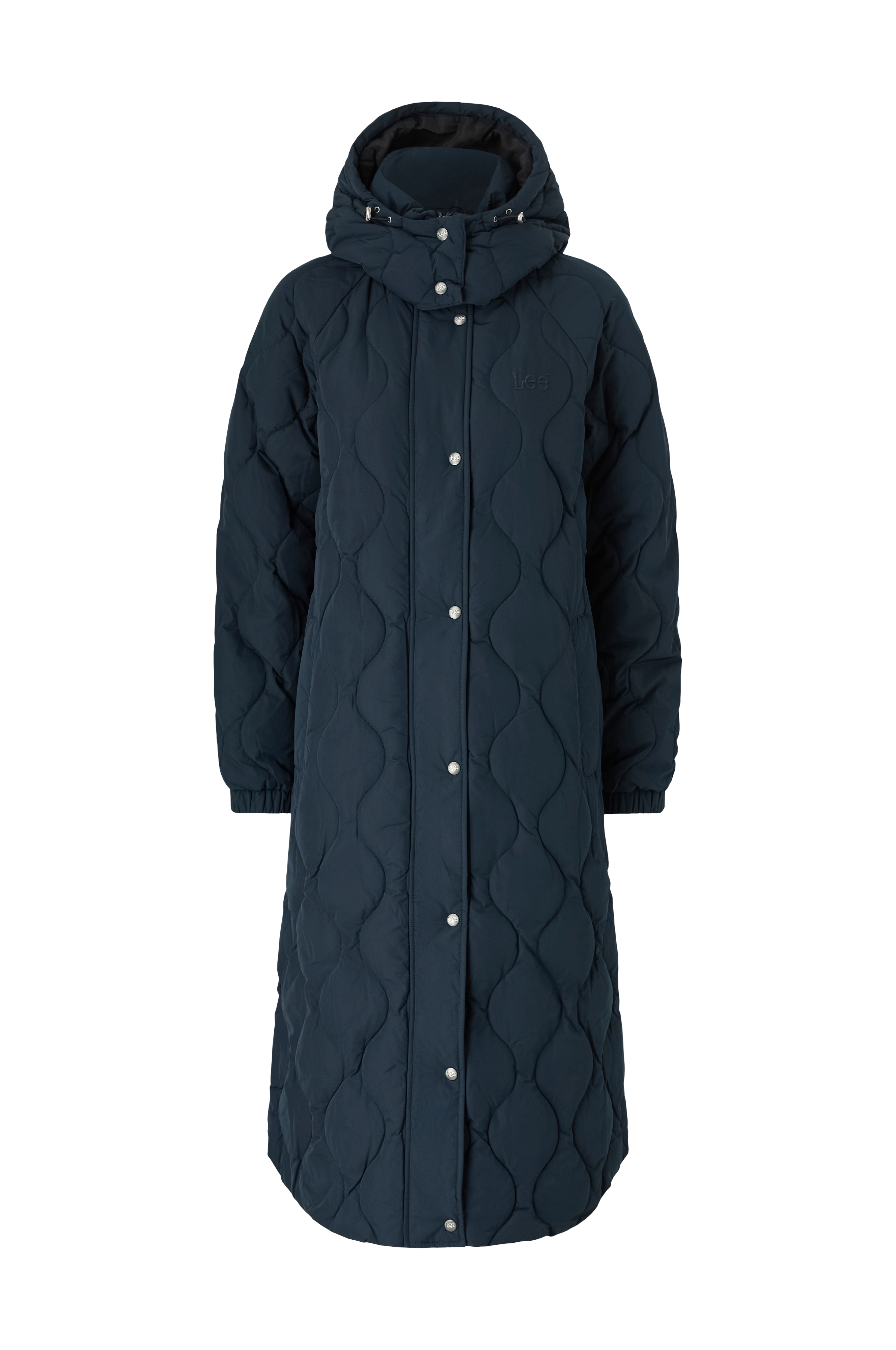 • Lang, quiltet pufferjakke med polstring
