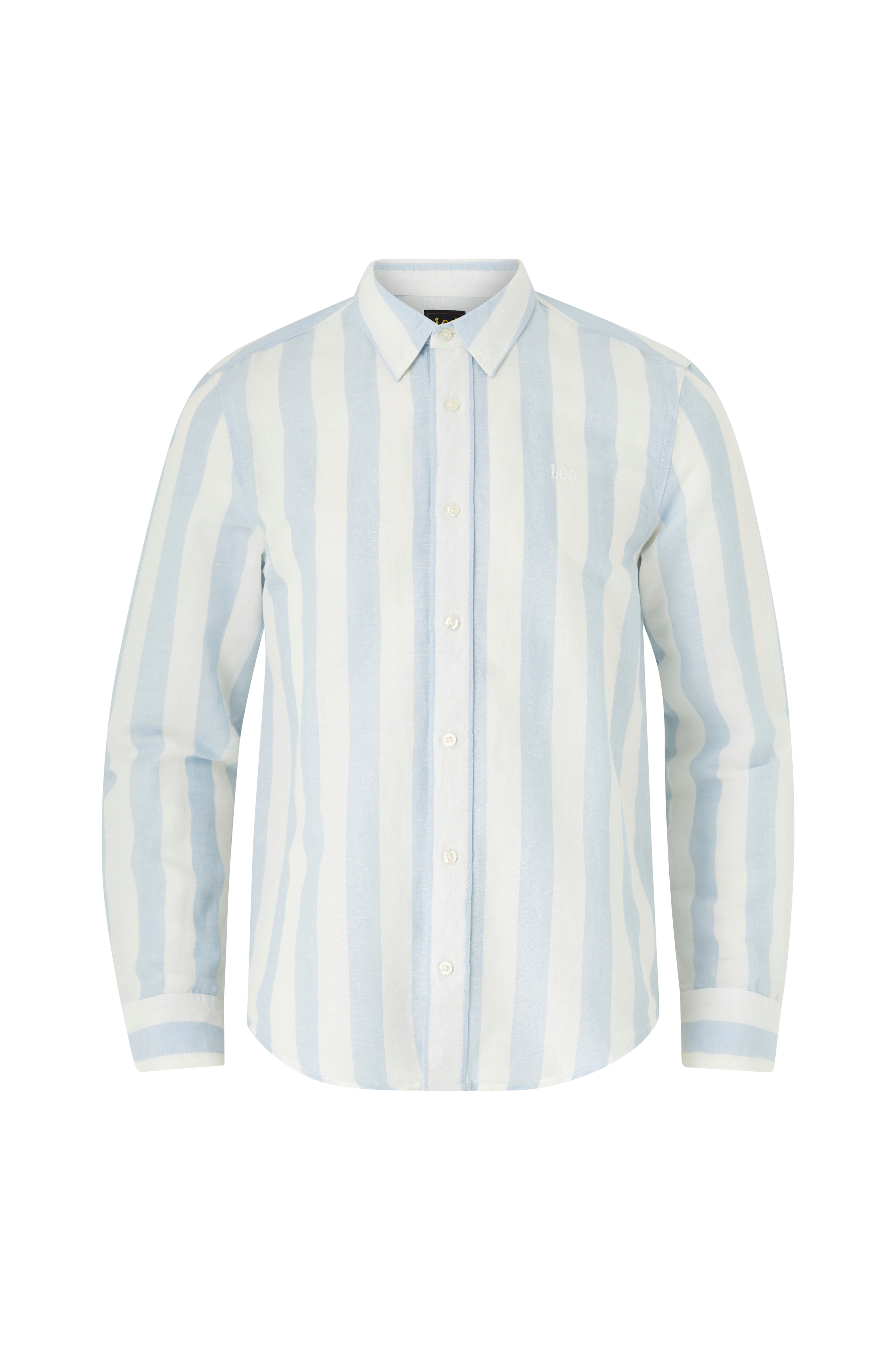 • Stribet skjorte i hørblanding• Normal pasform• Manchet med en knap• Broderet logo på brystet