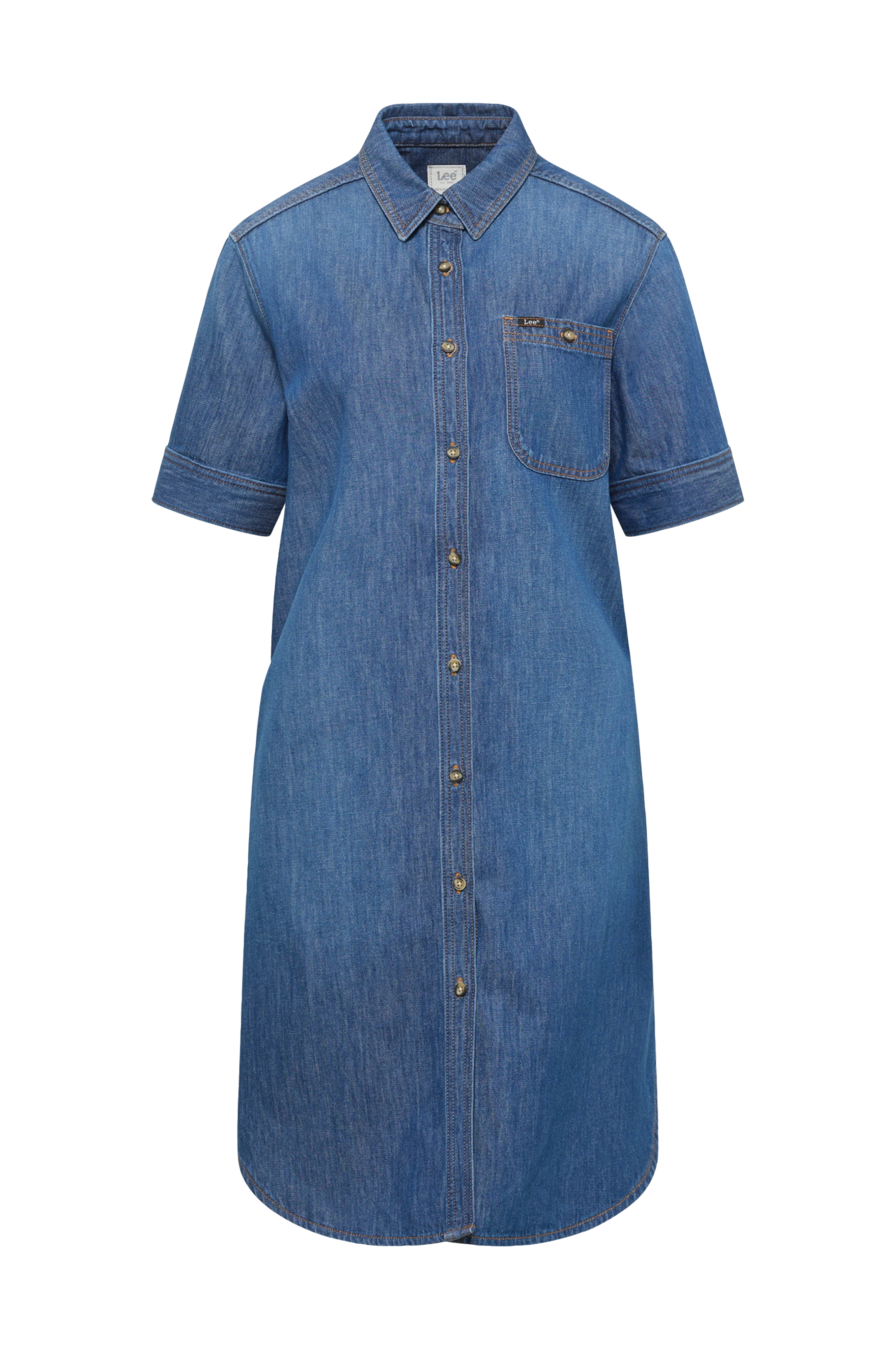 • Model med svaj i denim• Lille krave• En brystlomme• Kort ærme med manchet• Indlagte sidelommer• Afrundet søm med længere bagside• Længde: 98/105 cm i størrelse S