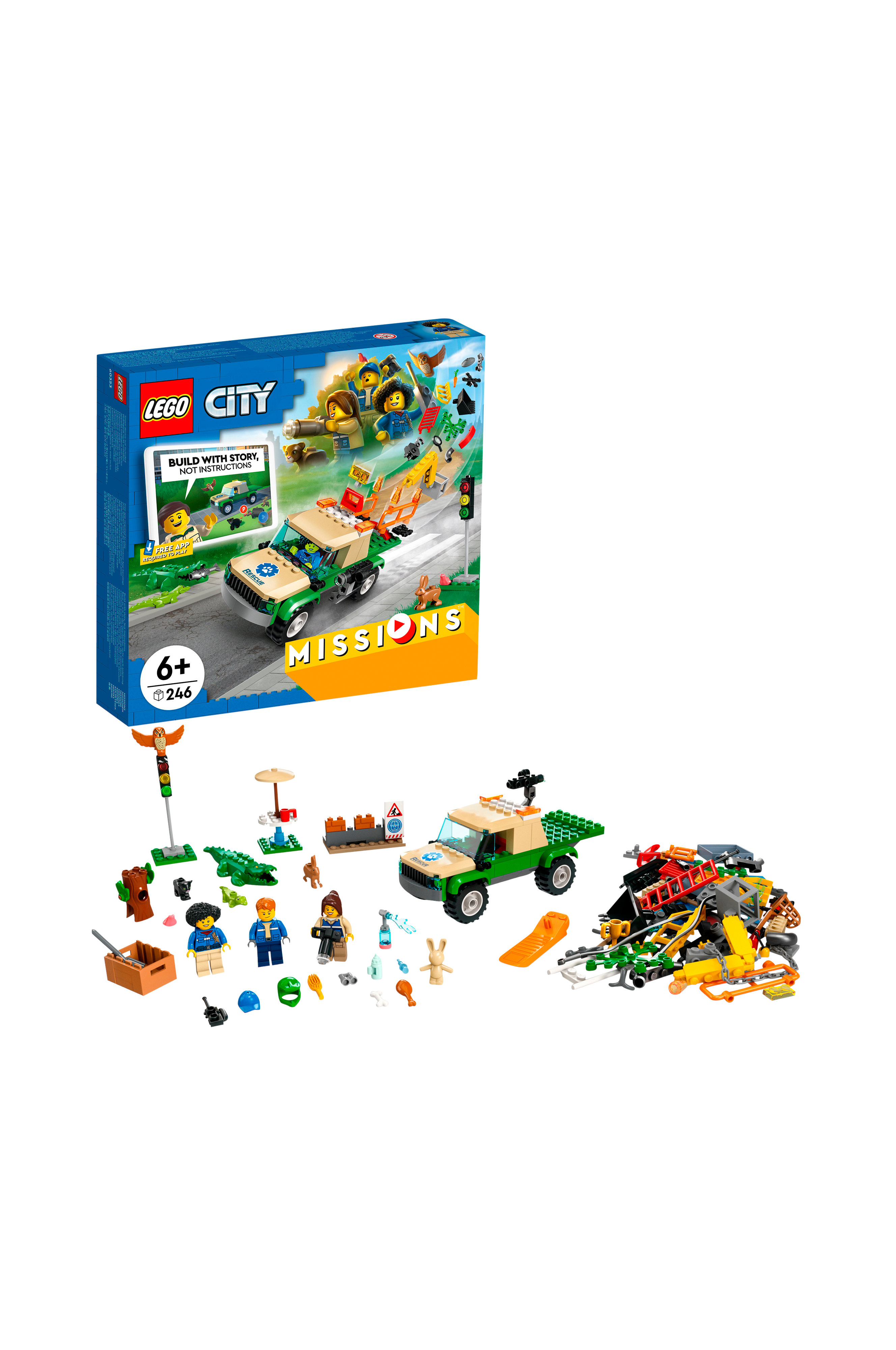 LEGO City legesættet Redningsmissioner for vilde dyr (60353) indeholder en missionsbil, 3 minifigurer, figurer af krokodilleunge, panterunge, frø, hare og ugle samt masser af LEGO elementer, der kan bruges til at løse spændende byggeudfordringer, som indgår i en historie. LEGO Citybyggesættet Redningsmissioner for vilde dyr er til børn fra 6 år og kræver en smartphone eller tablet med den gratis app LEGO Byggevejledninger.
