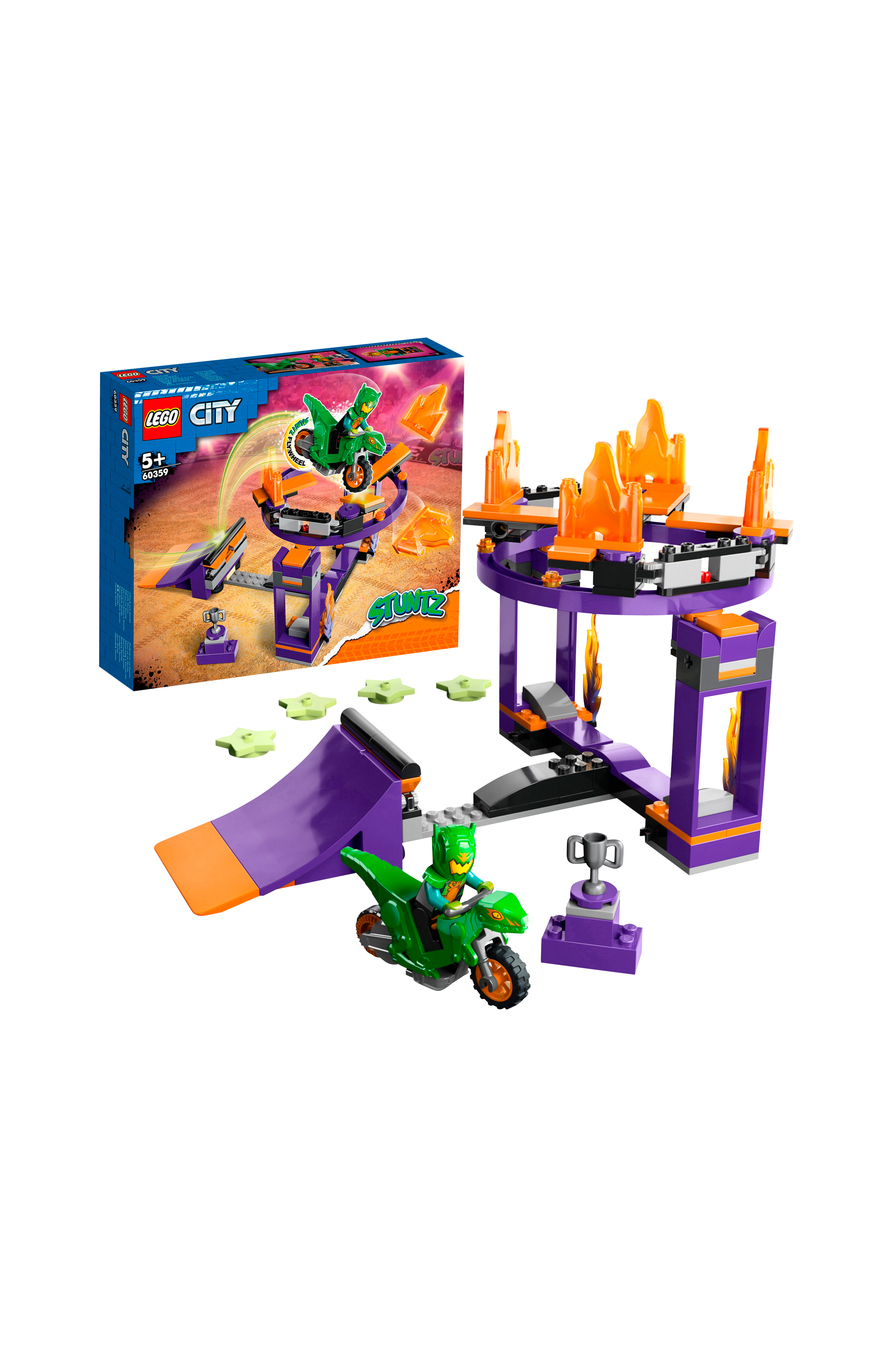 Timevis af fantastiske stuntshows og konkurrencer venter forude med dette legetøjssæt. Stuntringen kan stilles lodret eller vandret, sæt gang i stuntmotorcyklen og sæt af fra rampen for at udføre actionfyldte stunts. Indeholder også en fører.