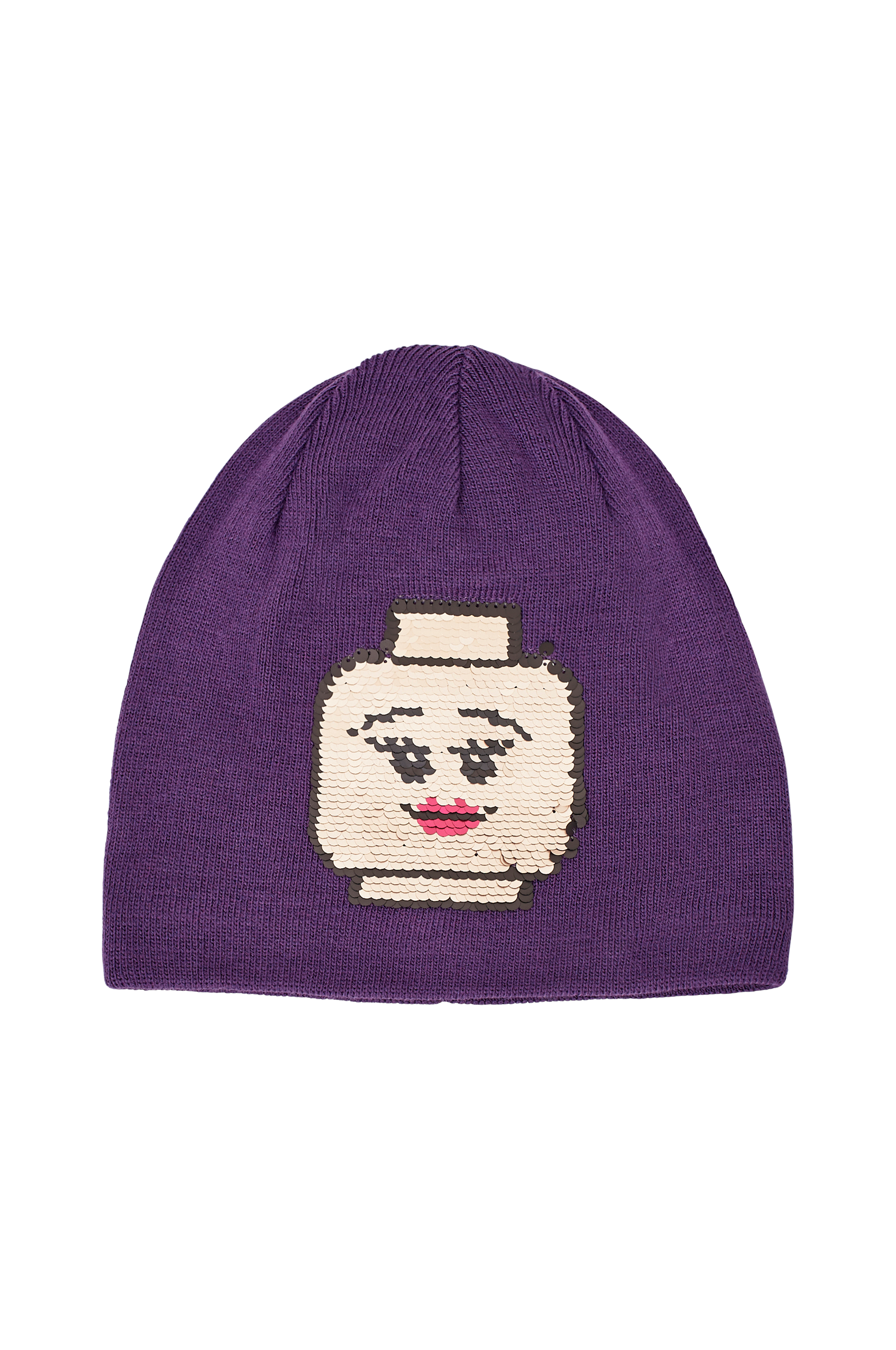 Strikket hue lwAndrea 701 fra Lego Wear med en applikation af skinnende, vendbare pailletter. Refleksdetalje bagpå.