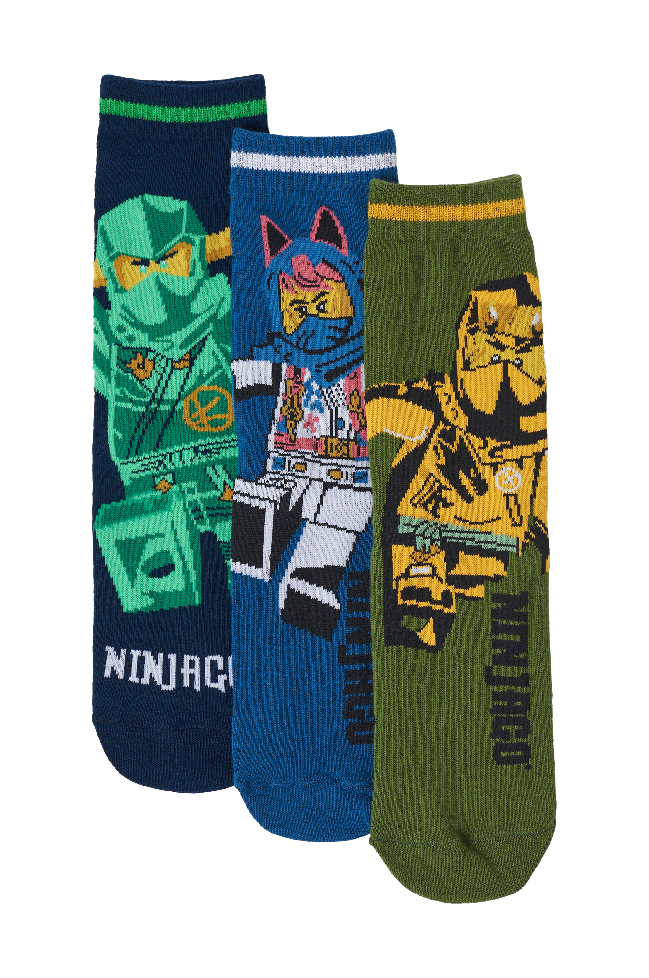 • Sokker med Ninjago-motiv• Blød kvalitet• Elastisk, ribbet kant på skaftet• Tre par