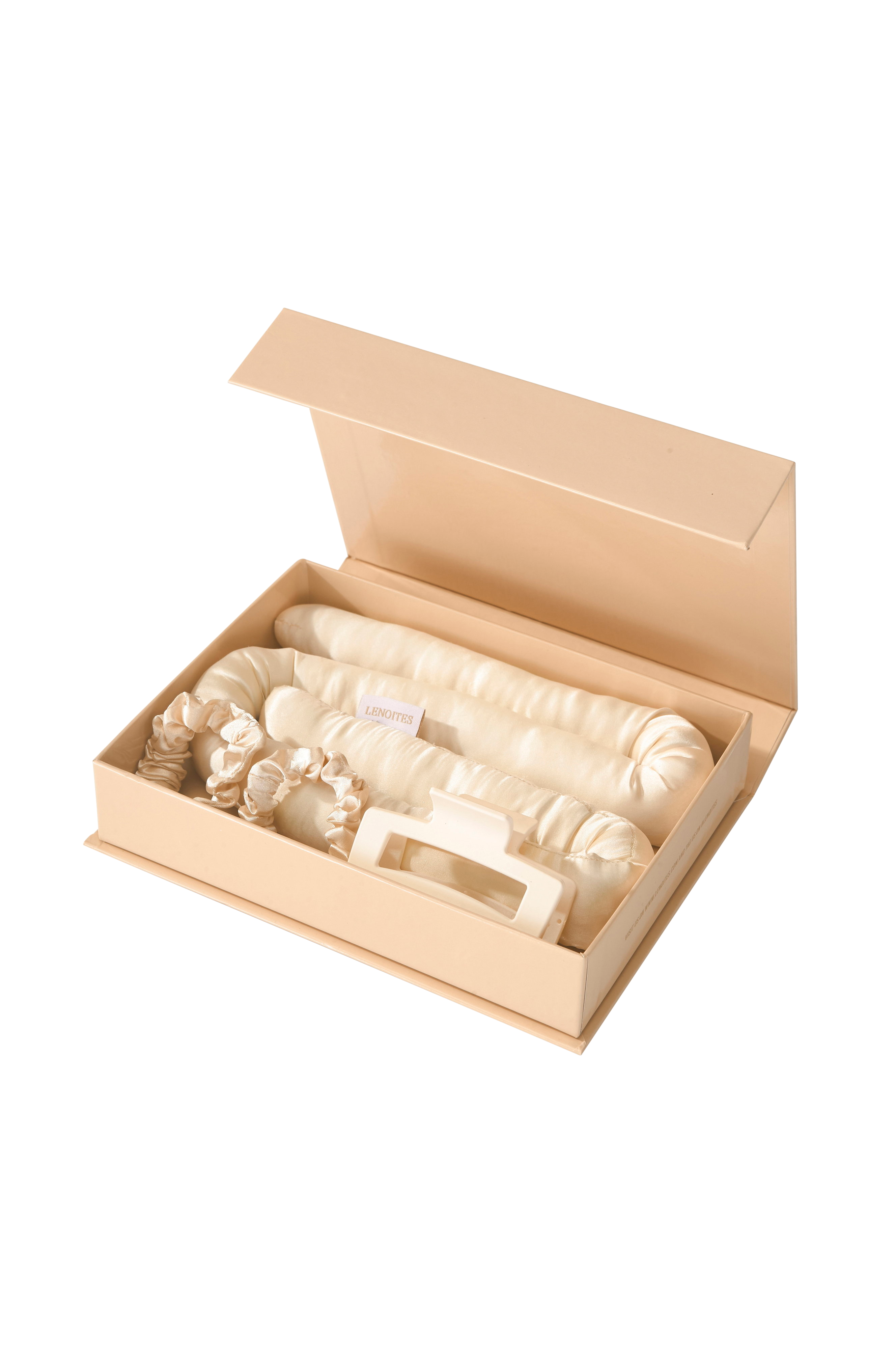 - Medfølgende tilbehør: 1 hårspænde og 2 satin-scrunchies