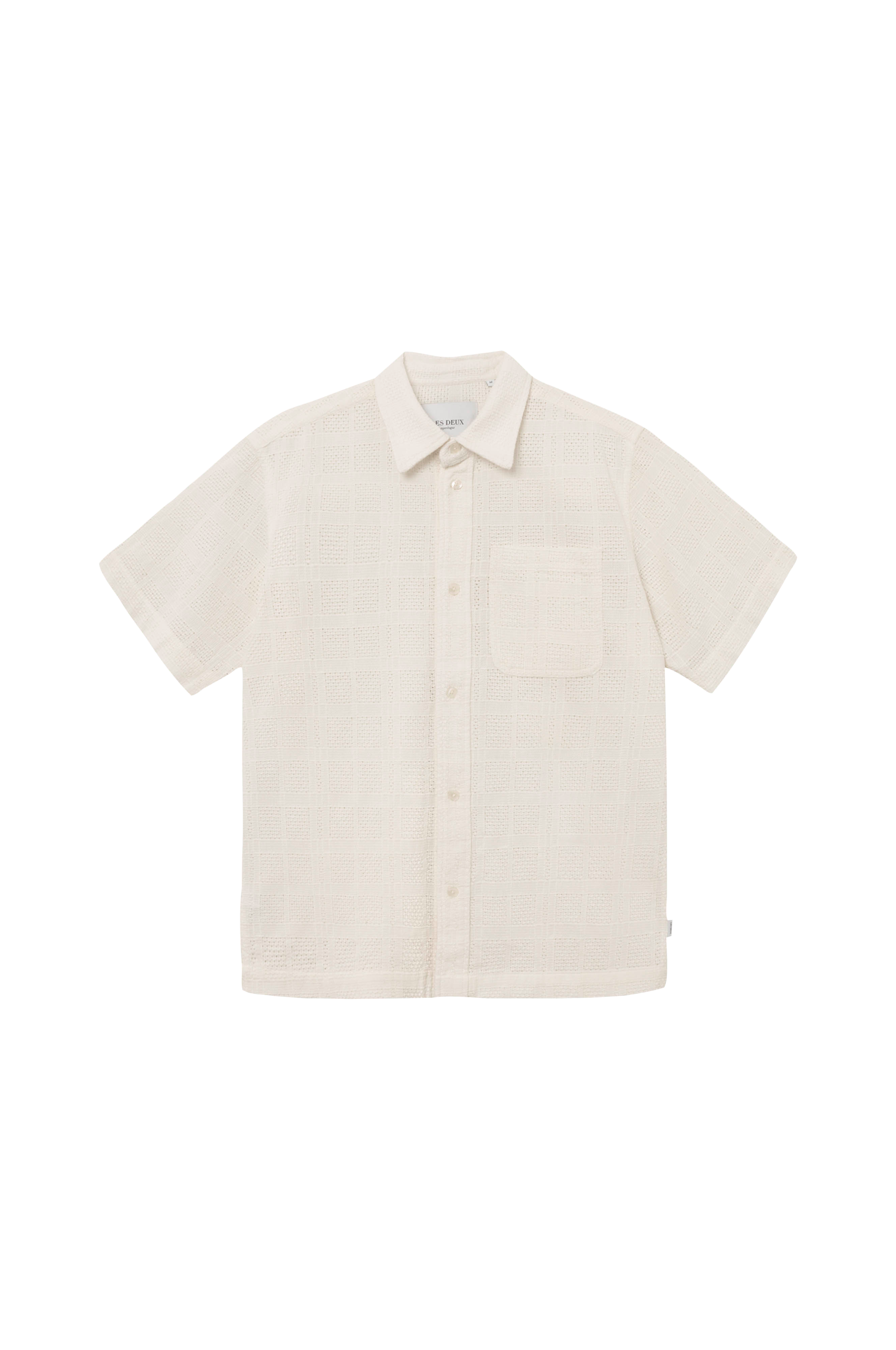 • Kortærmet skjorte med behandlet mønster• En brystlomme• Knapper