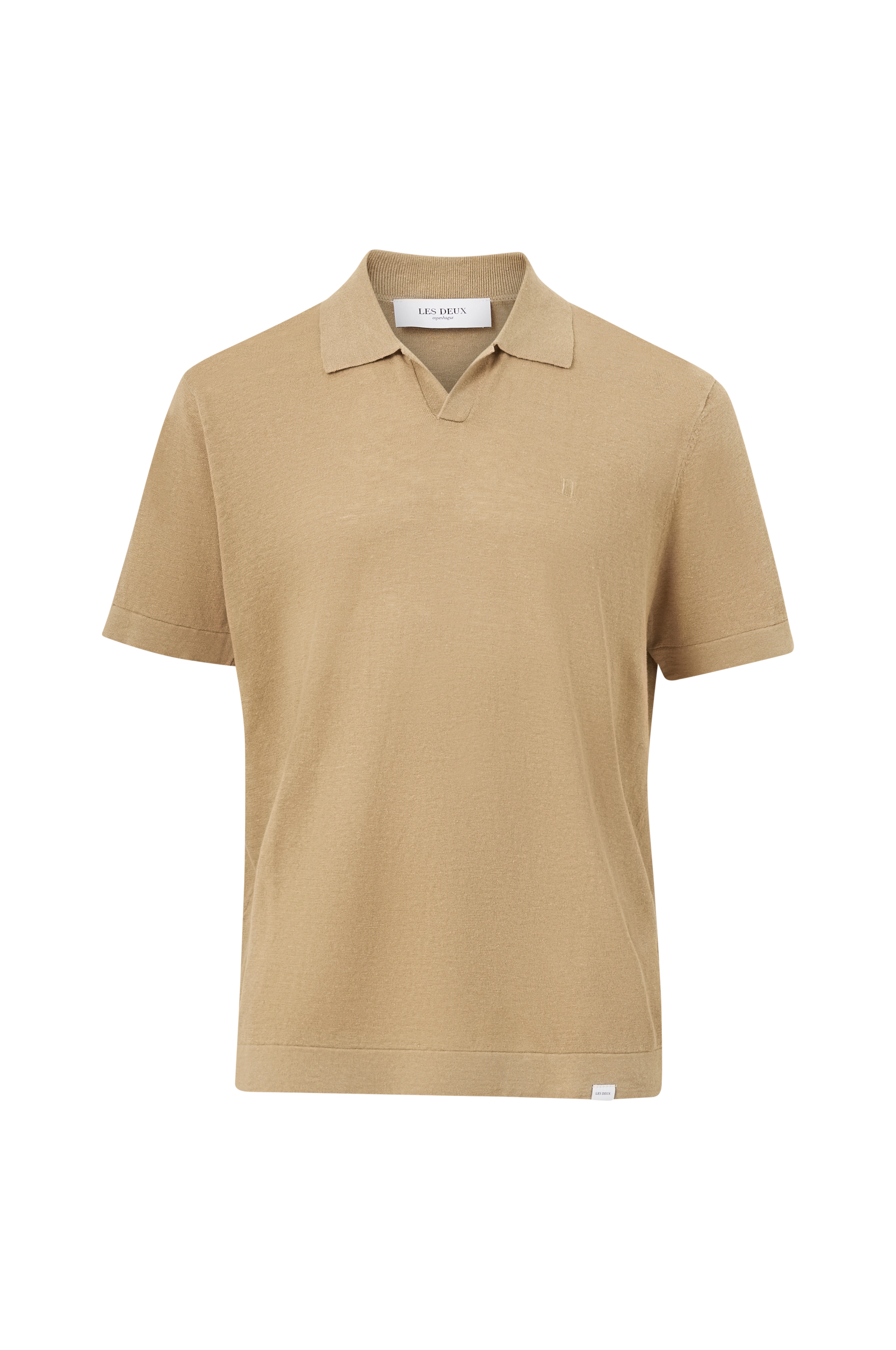 • Fremstillet af hørblanding• Ribbet krave• V-formet halsudskæring• Ribkanter ved ærmeafslutningerne og nederst