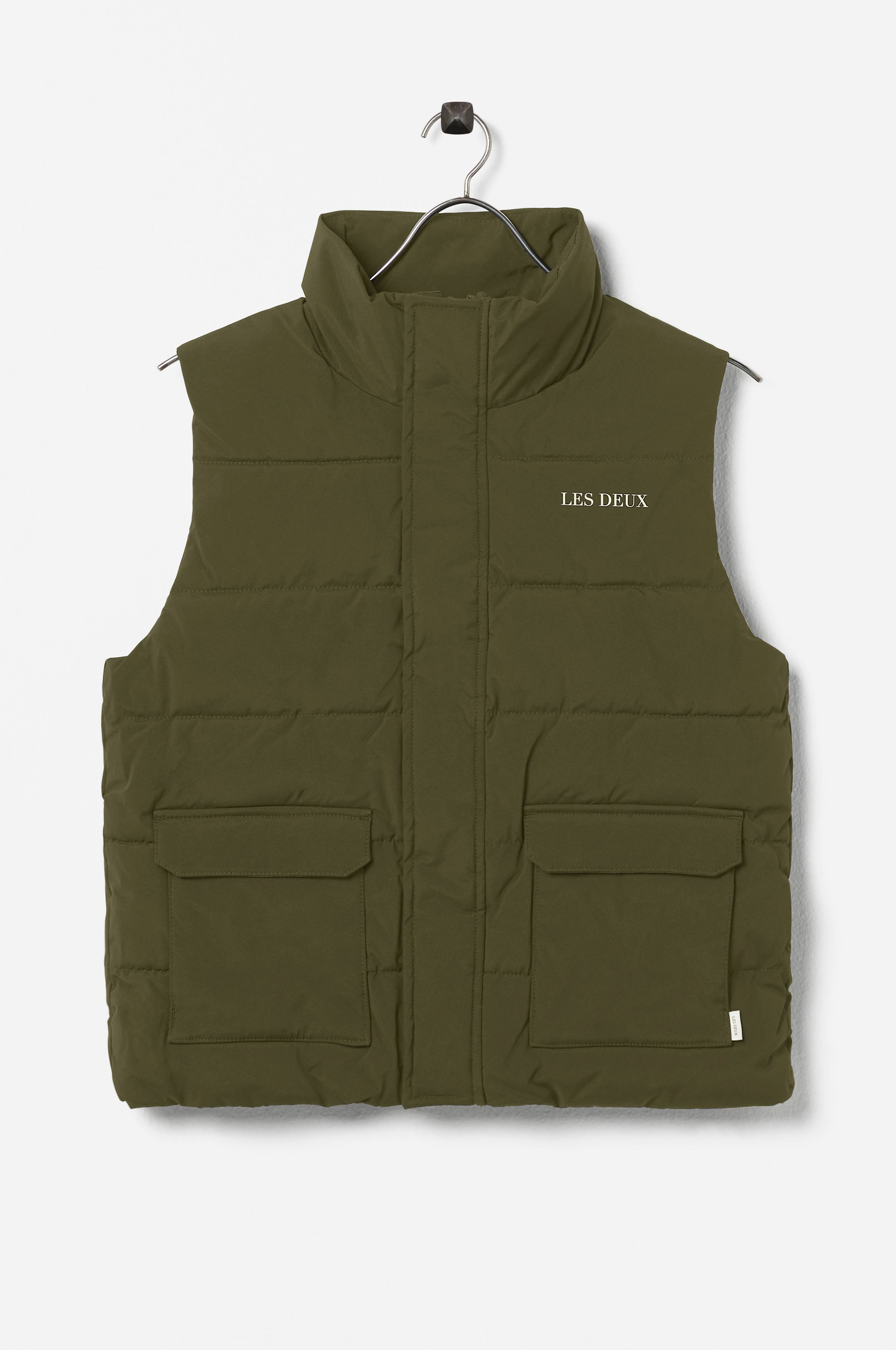 - Vindafvisende- Vandafvisende- Åndbar- Quiltet, vatteret vest- Lynlås- Overfald med trykknapper- Løbegang i kanten forneden- To lommer med magnetlukning- Noget lille i størrelsen. Vælg gerne en størrelse større end du plejer.