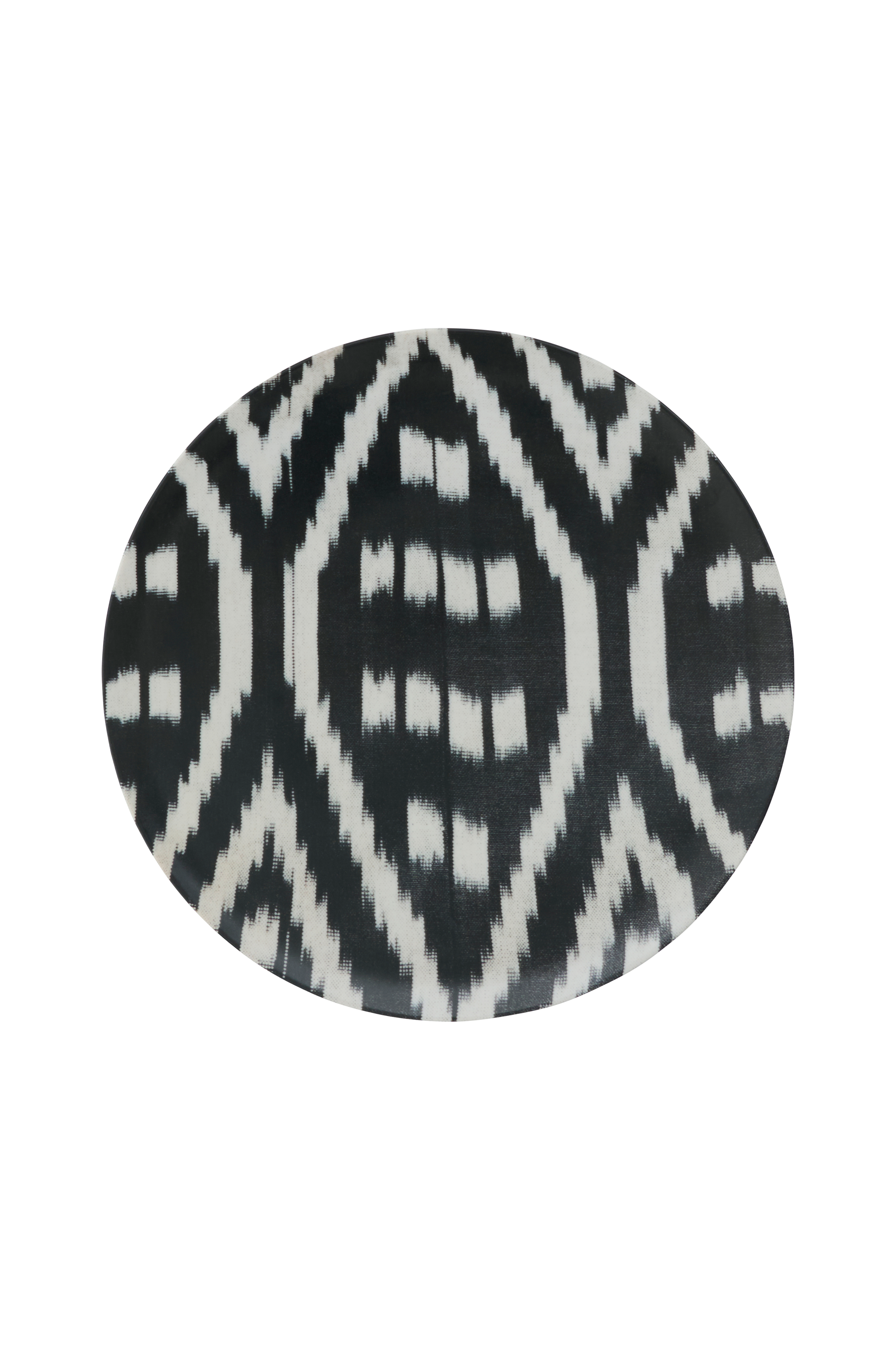 Ethvert bord bliver unikt og specielt med denne tallerken. Mønsteret er IKAT og det vil gøre enhver opdækning uforglemmelig. Tallerkenen er i keramik med digitalt print. Denne tallerken kan både bruges som tallerken eller serveringsfad. Kan vaskes i opvaskemaskine. Størrelsen er 32 cm.