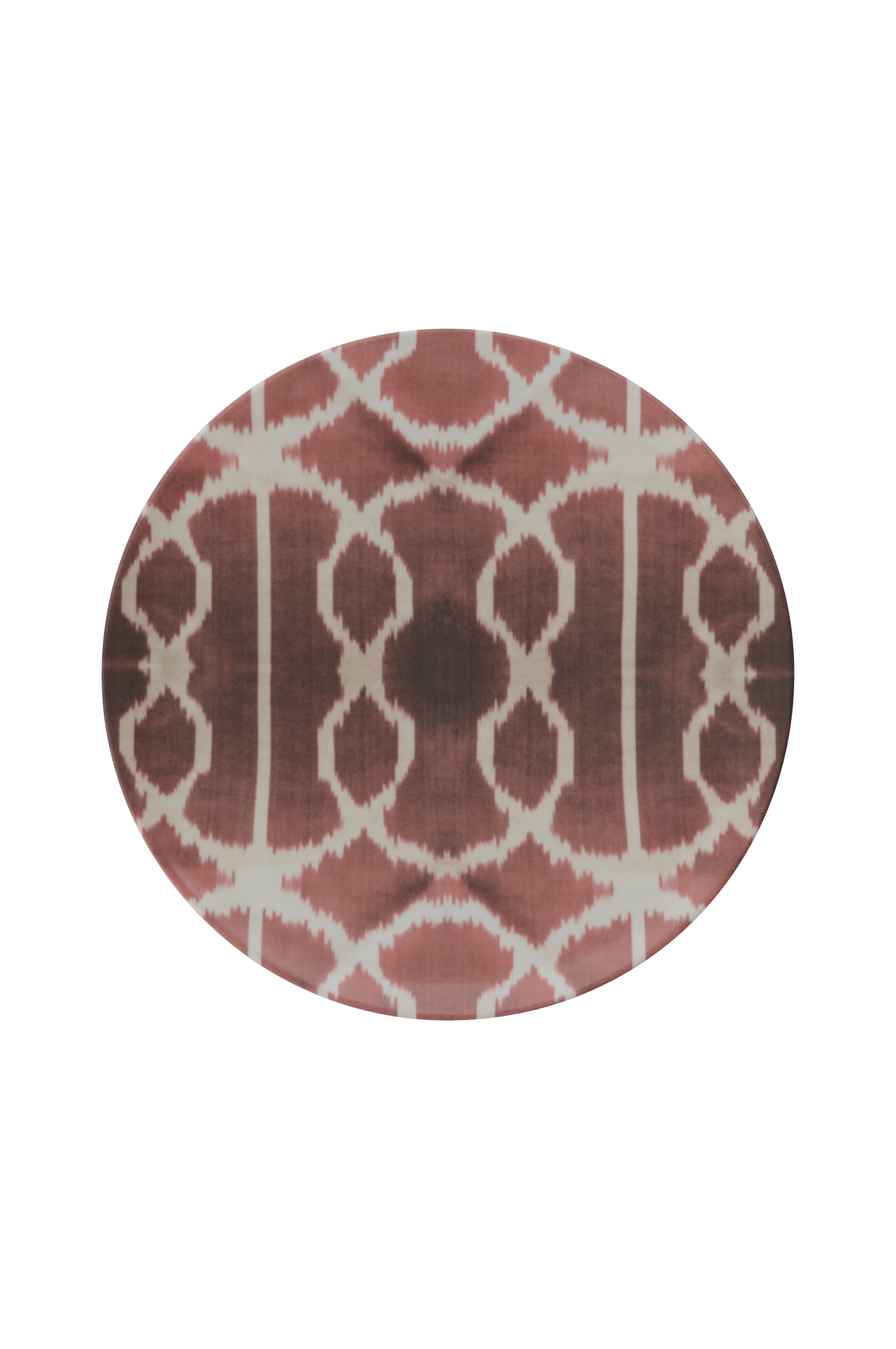 Ethvert bord bliver unikt og specielt med denne tallerken. Mønsteret er IKAT og det vil gøre enhver opdækning uforglemmelig. Tallerkenen er i keramik med digitalt print. Denne tallerken kan både bruges som tallerken eller serveringsfad. Kan vaskes i opvaskemaskine. Størrelsen er 32 cm.