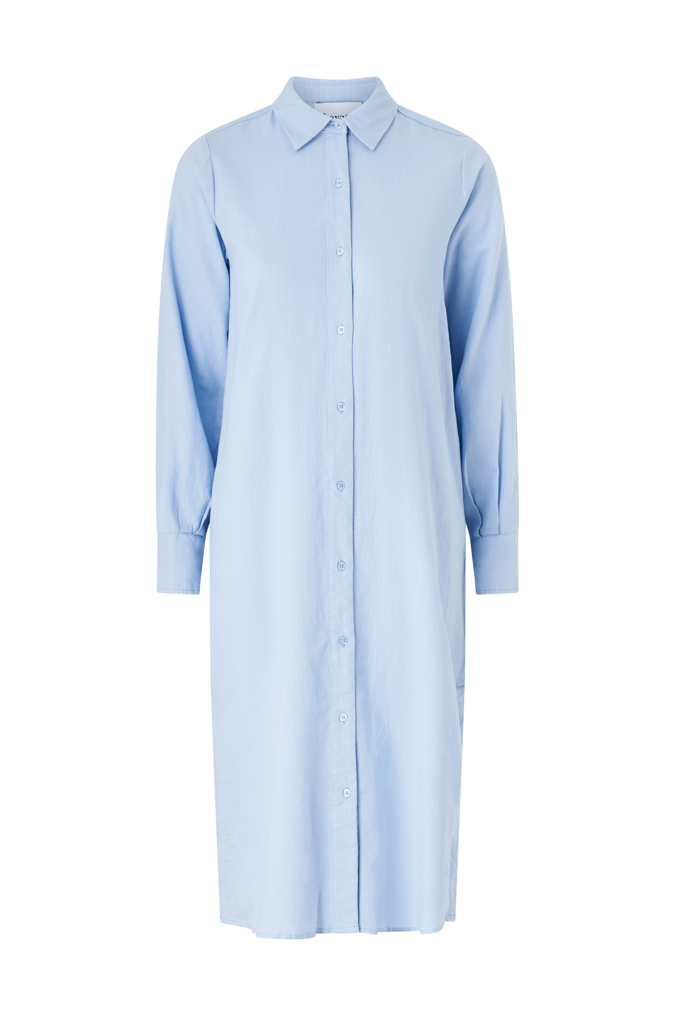 • Kjole i hørblanding• Knapper hele vejen frem• Lange ærmer• Manchet ved manchetterne med en knap• Slidser nede i siderne med knapper• Længde: 115 cm i størrelse XS