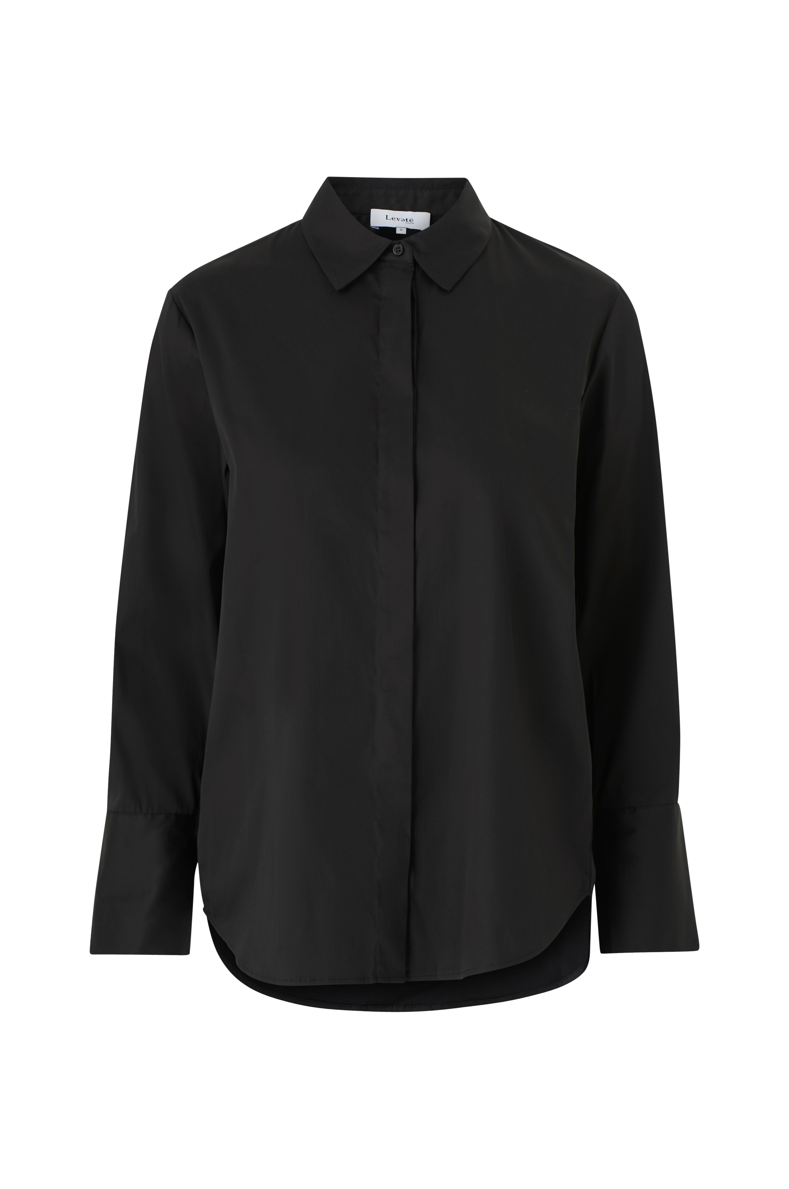• Lige model• Skjulte knapper hele vejen frem• Langt ærme med bred manchet• Afrundet søm