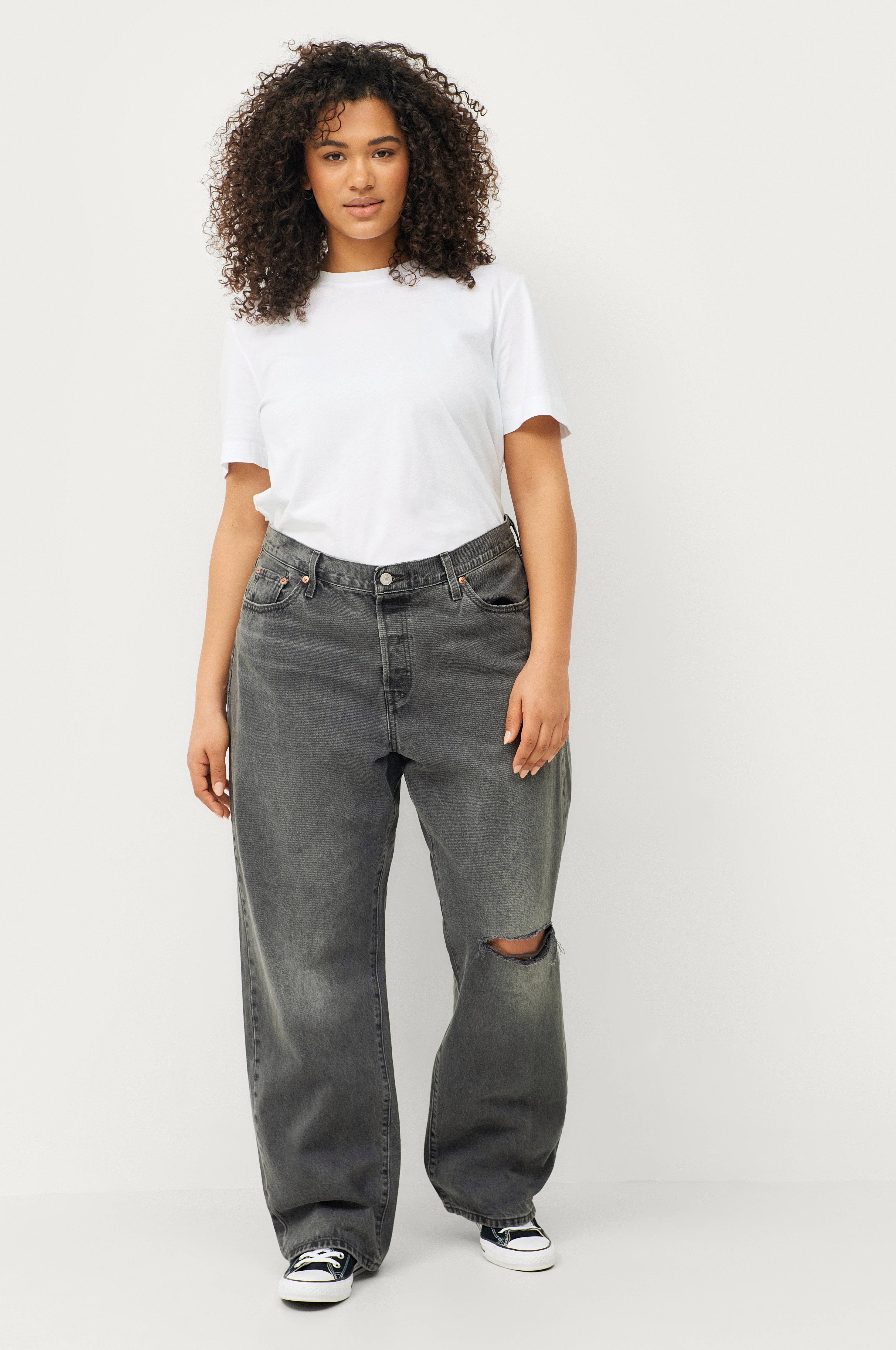 - Middelhøj talje- Afslappet pasform- Lige ben- Knapgylp- 5-lommemodel- Plusstørrelser