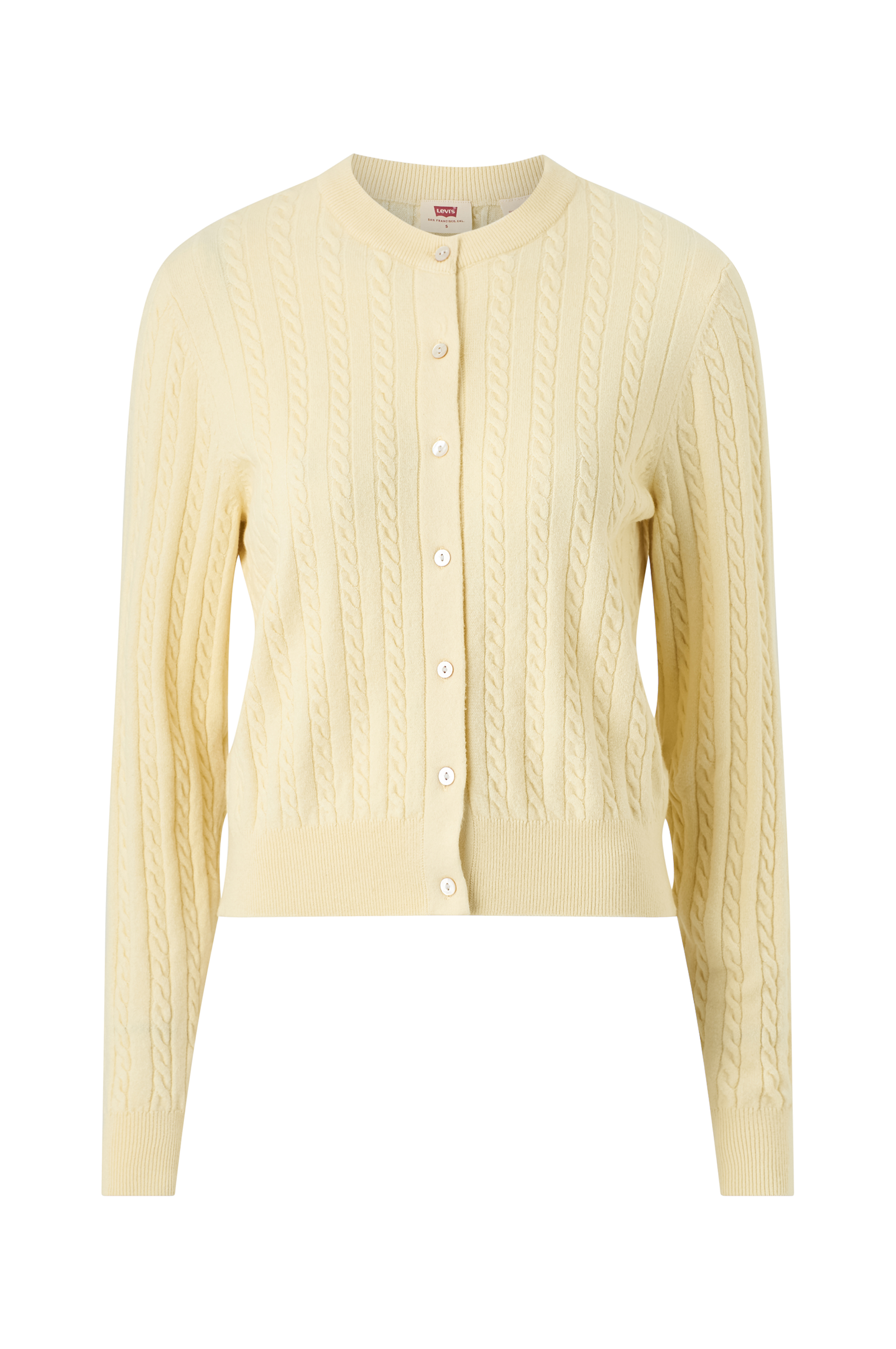 • Kabelstrikket, langærmet cardigan i bomuld• Rund, ribbet halsudskæring• Knapper foran• Ribstrik ved manchetterne og ved nederste kant