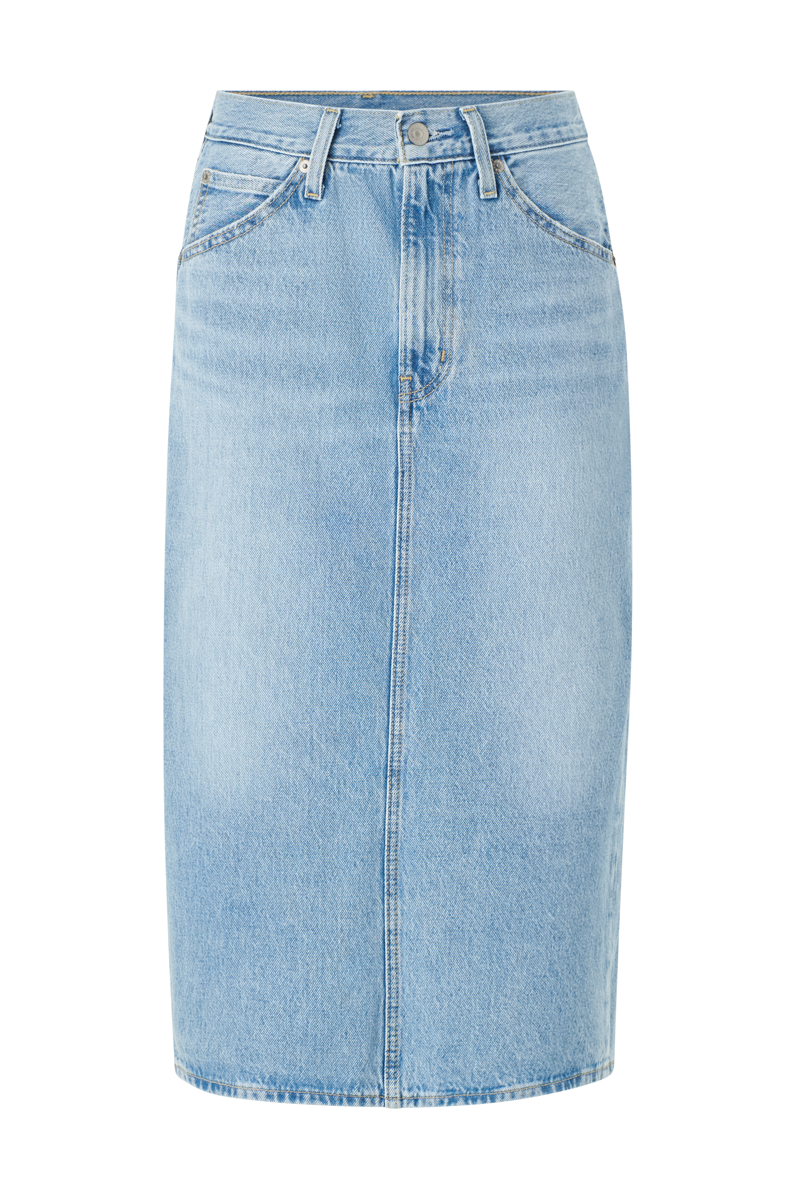 • Cowboynederdel i bomuldsdenim uden stræk• Femlommemodel• Gylp med lynlås• Slids bagpå