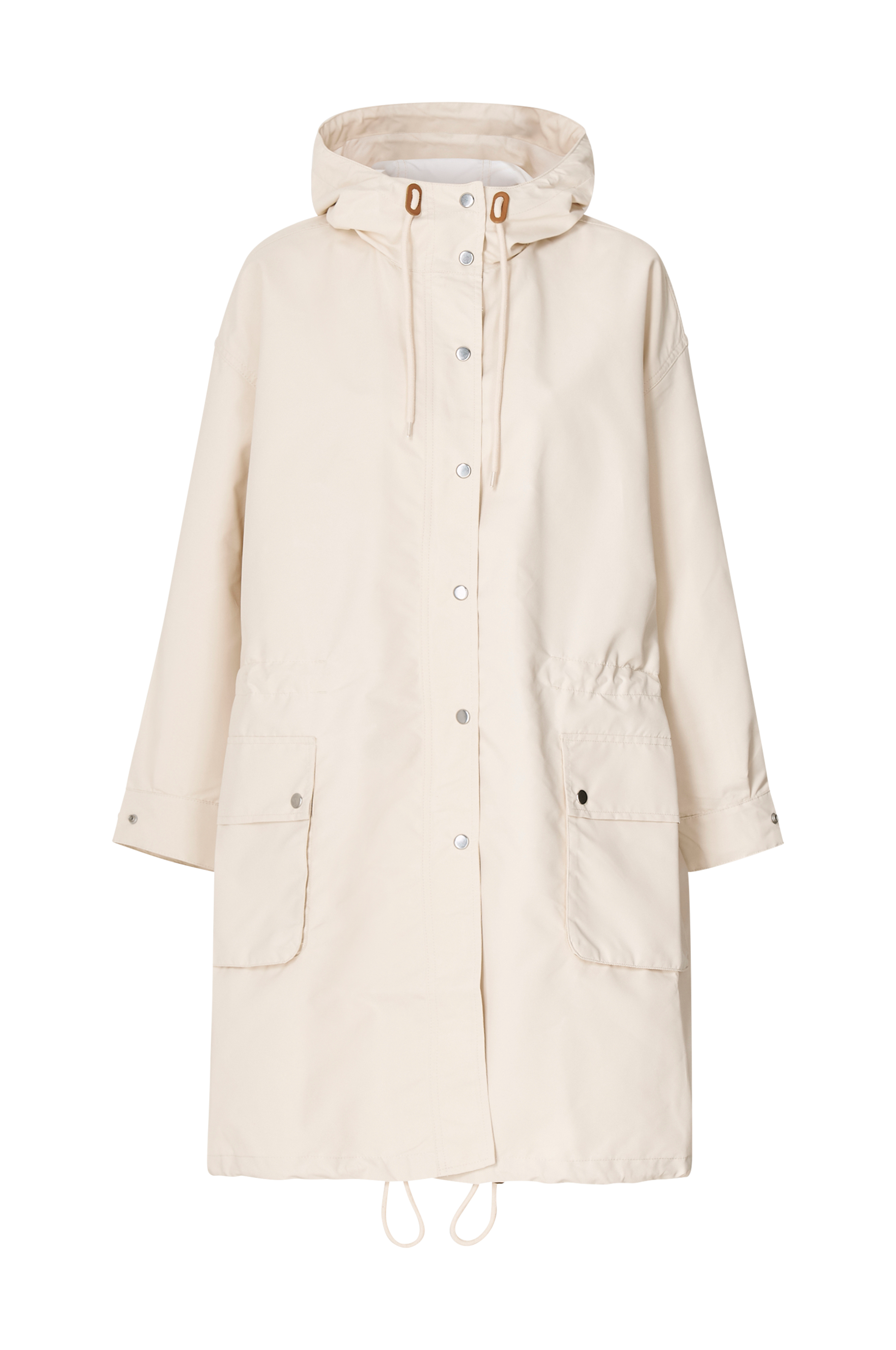 • Vandafvisende frakke• Lynlås med vindflap og trykknapper foran• Indvendig træksnørre ved taljen og nederst• Hætte med træksnørre• Justérbare ærmeafslutninger med trykknap• Uforet• Længde: 100 cm i størrelse S