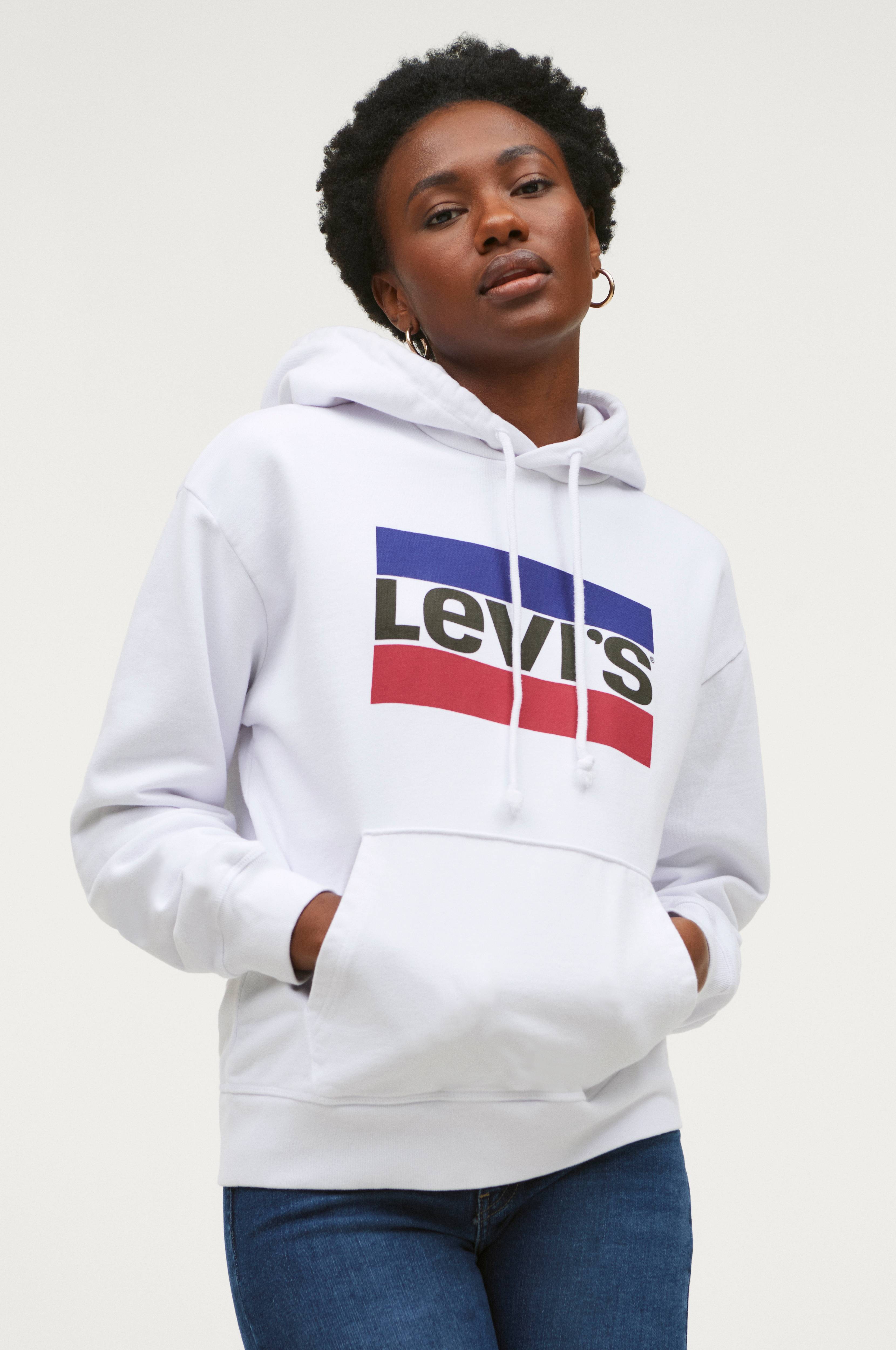 Hoodie med printet logo foran og kængurulomme. Hætte med løbegang. Rib i ærmekant og forneden.
