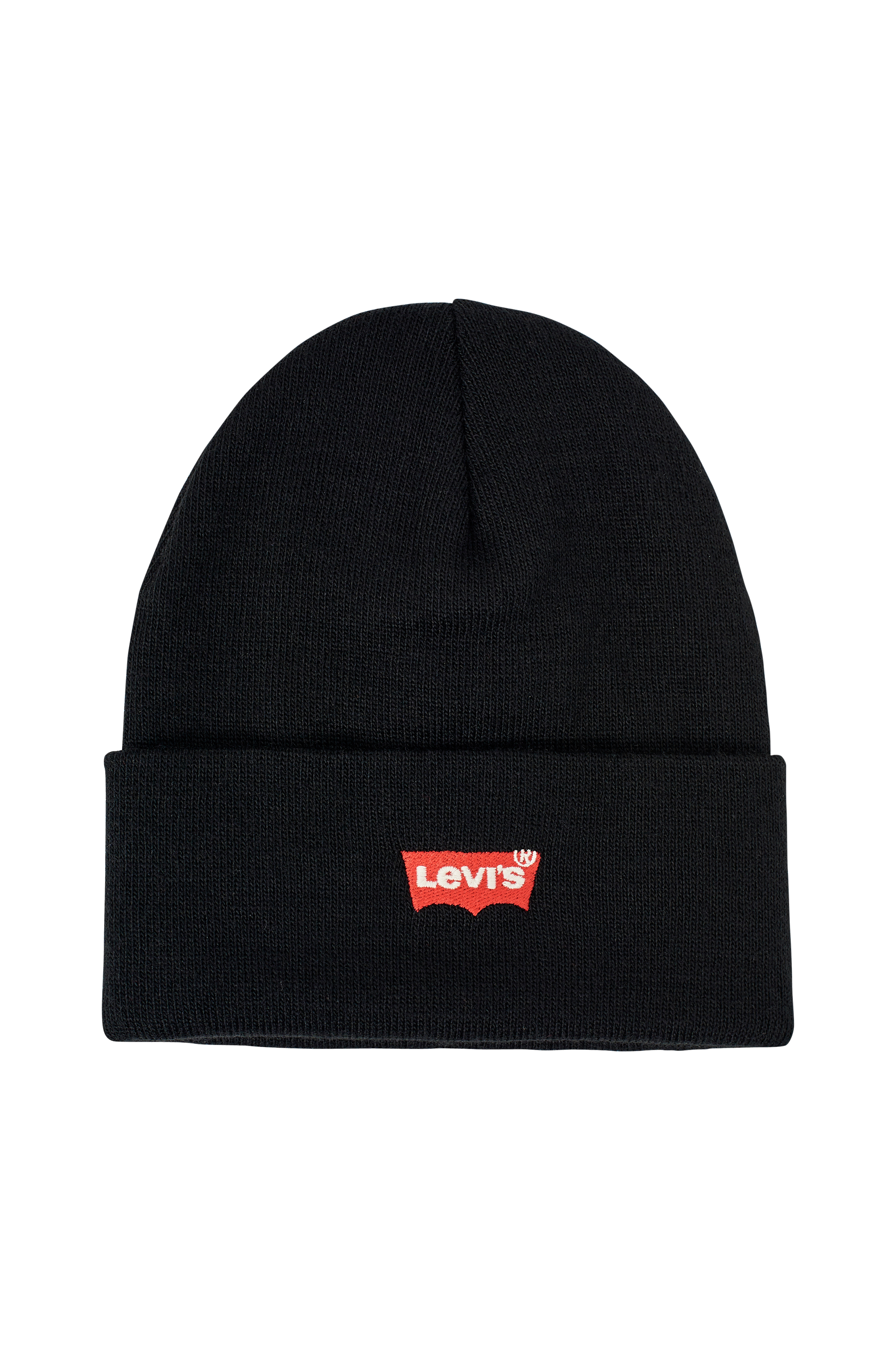 Strikket hue Red Batwing Embroidered Slouchy Beanie fra Levi's. Ombukket kant forneden med broderet Levi's-logo.
