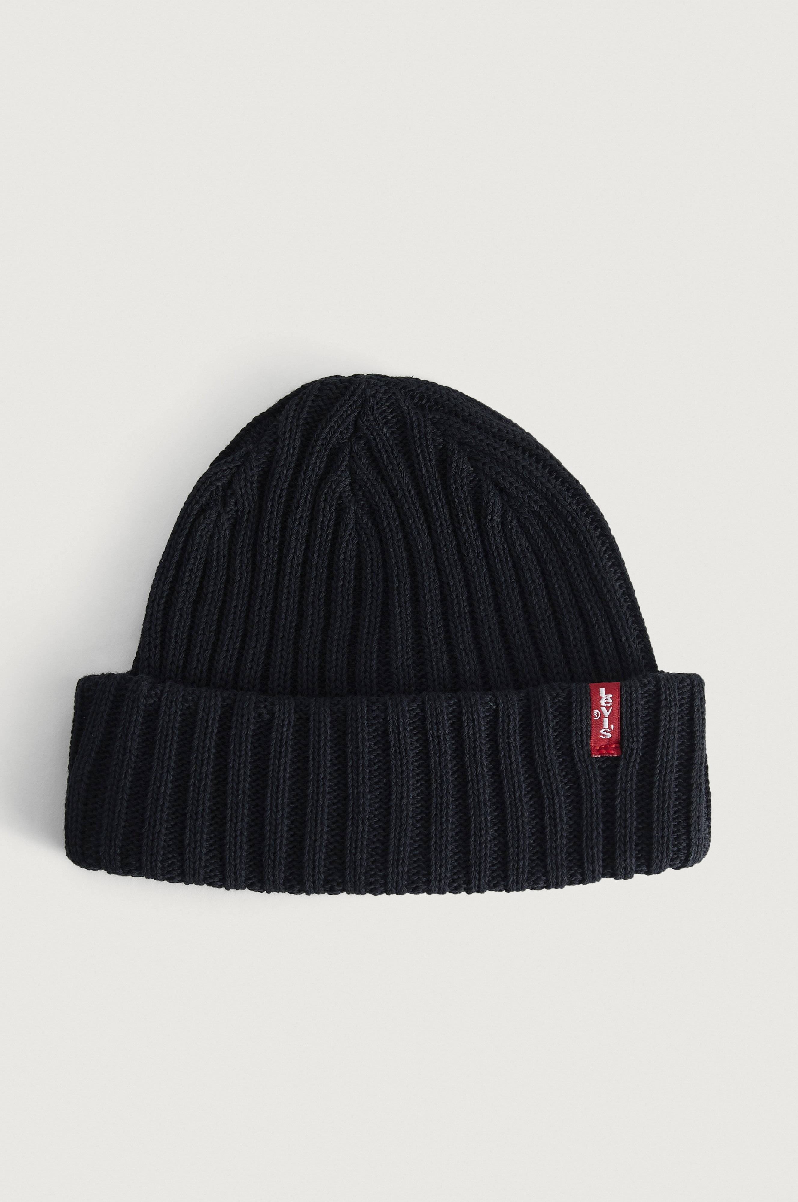 Hue Ribbed Beanie fra Levi's. Ribstrikket og kanten kan foldes op, hvis du ønsker det. One size.