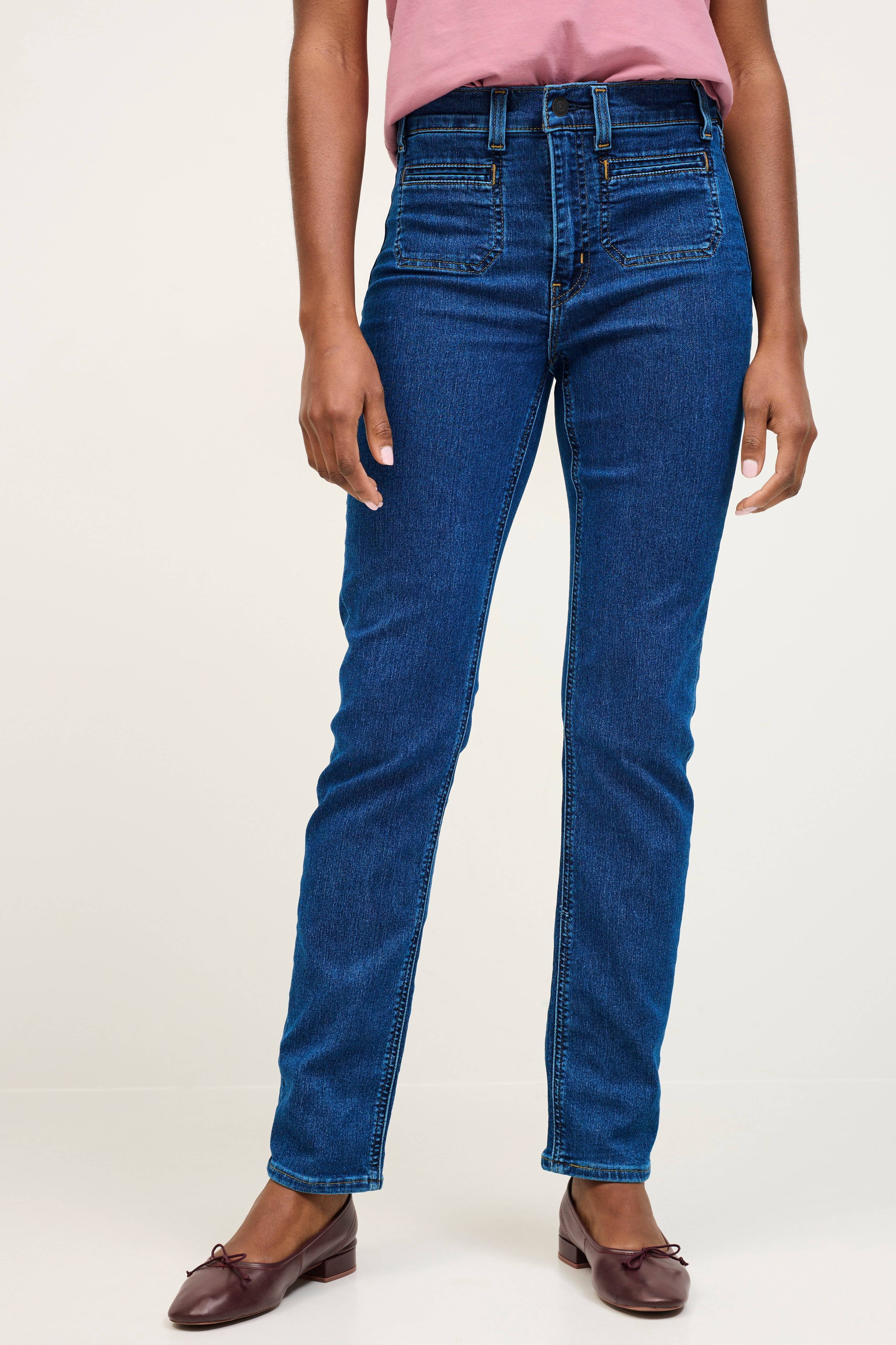 Modellen er 175 cm høj og bærer en str. W27/L32