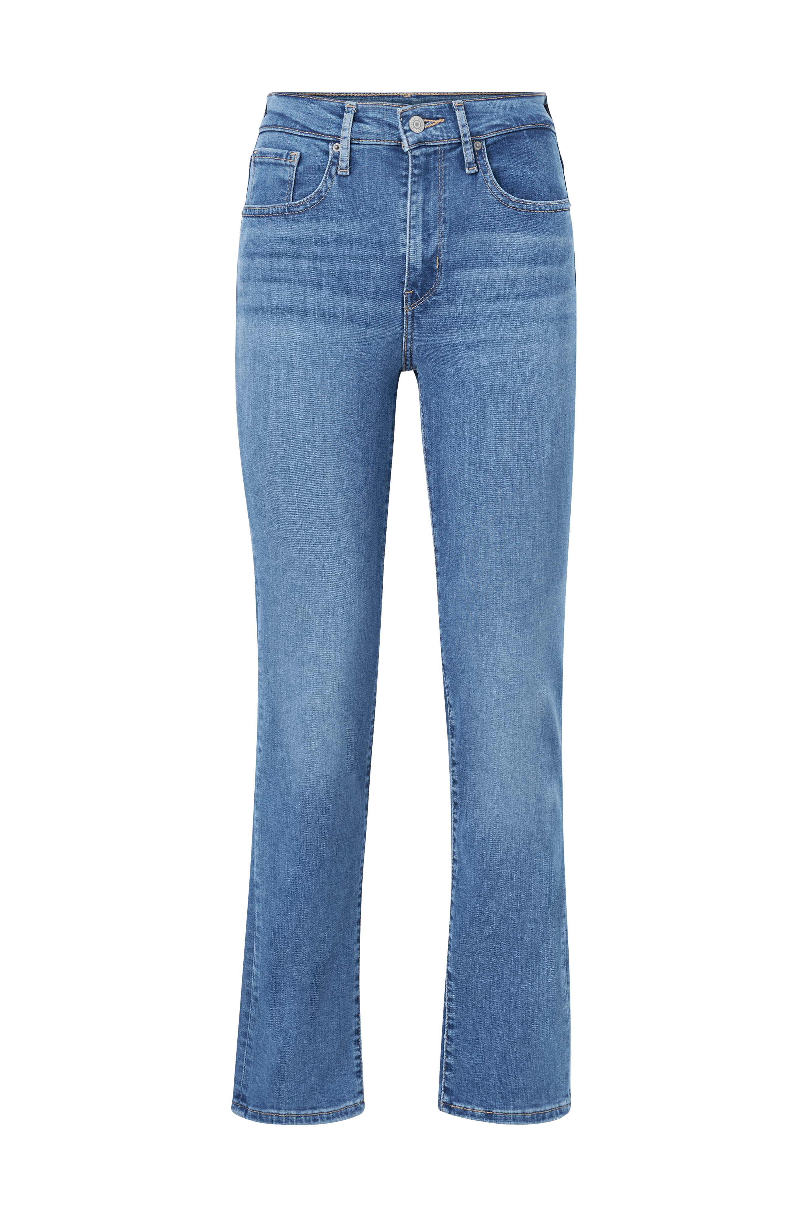 Jeans 724 High Rise Straight fra Levi's. Flot, smal model med høj talje og smalle men lige ben. Linning med stropper og lynlås i gylpen samt tre lommer foran og to lommer bagpå.