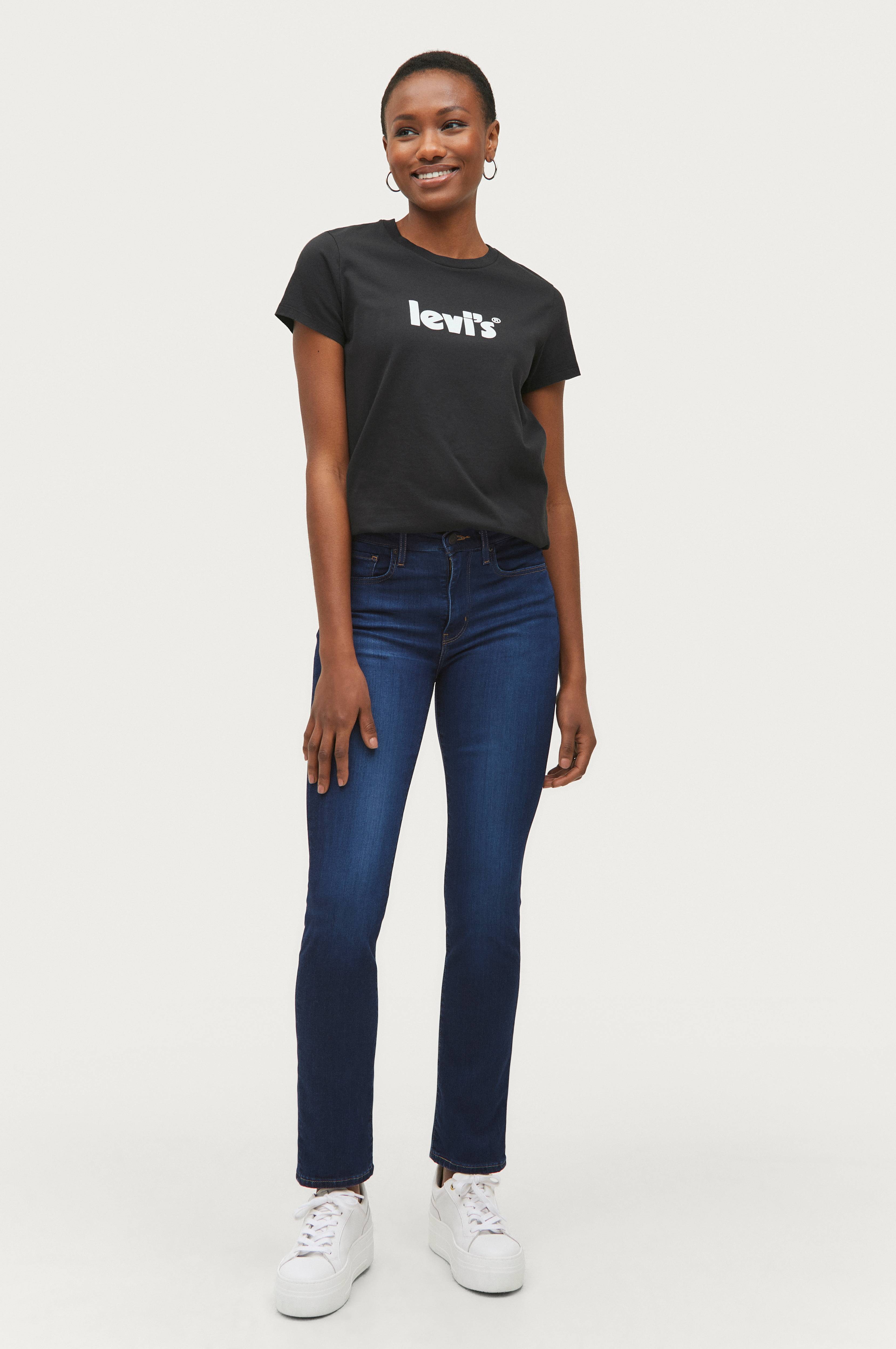Jeans 724 High Rise Straight fra Levi's. Flot, smal model med høj talje og smalle men lige ben. Linning med stropper og lynlås i gylpen samt tre lommer foran og to lommer bagpå.