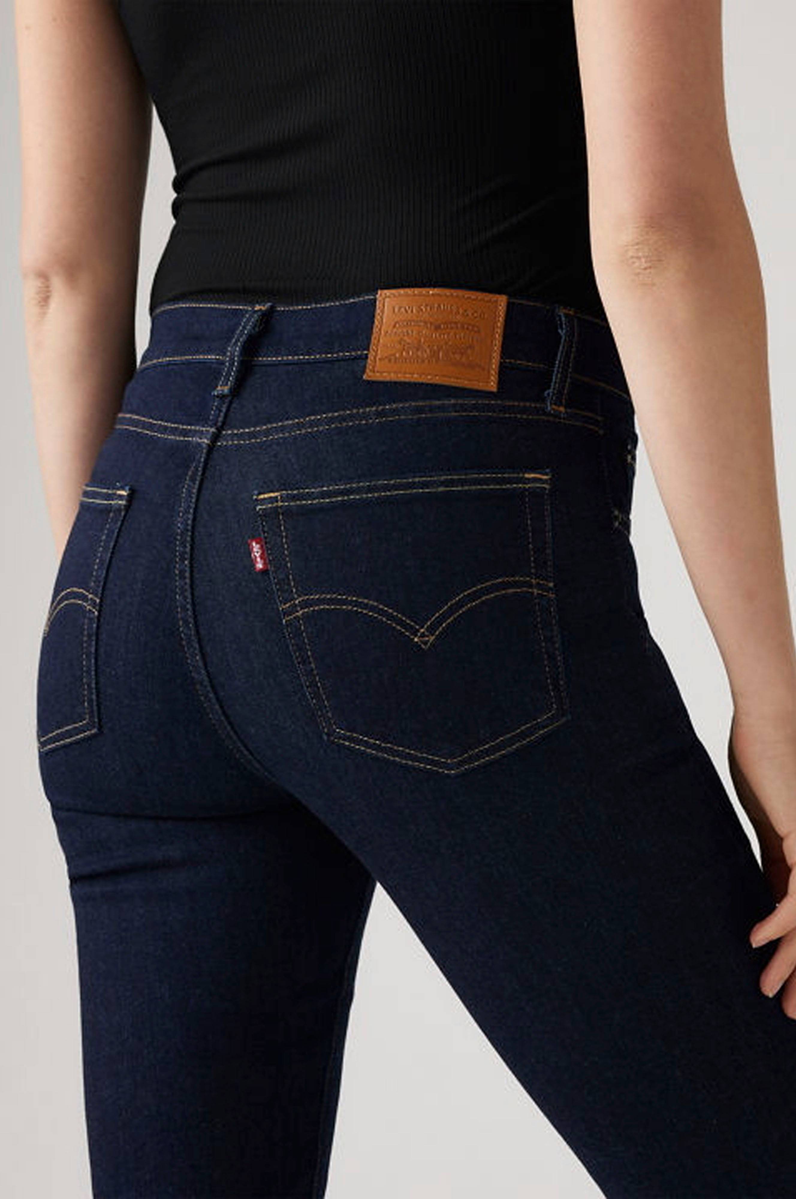 Jeans 724 High Rise Straight fra Levi's. Flot, smal model med høj talje og smalle men lige ben. Linning med stropper og lynlås i gylpen samt tre lommer foran og to lommer bagpå.