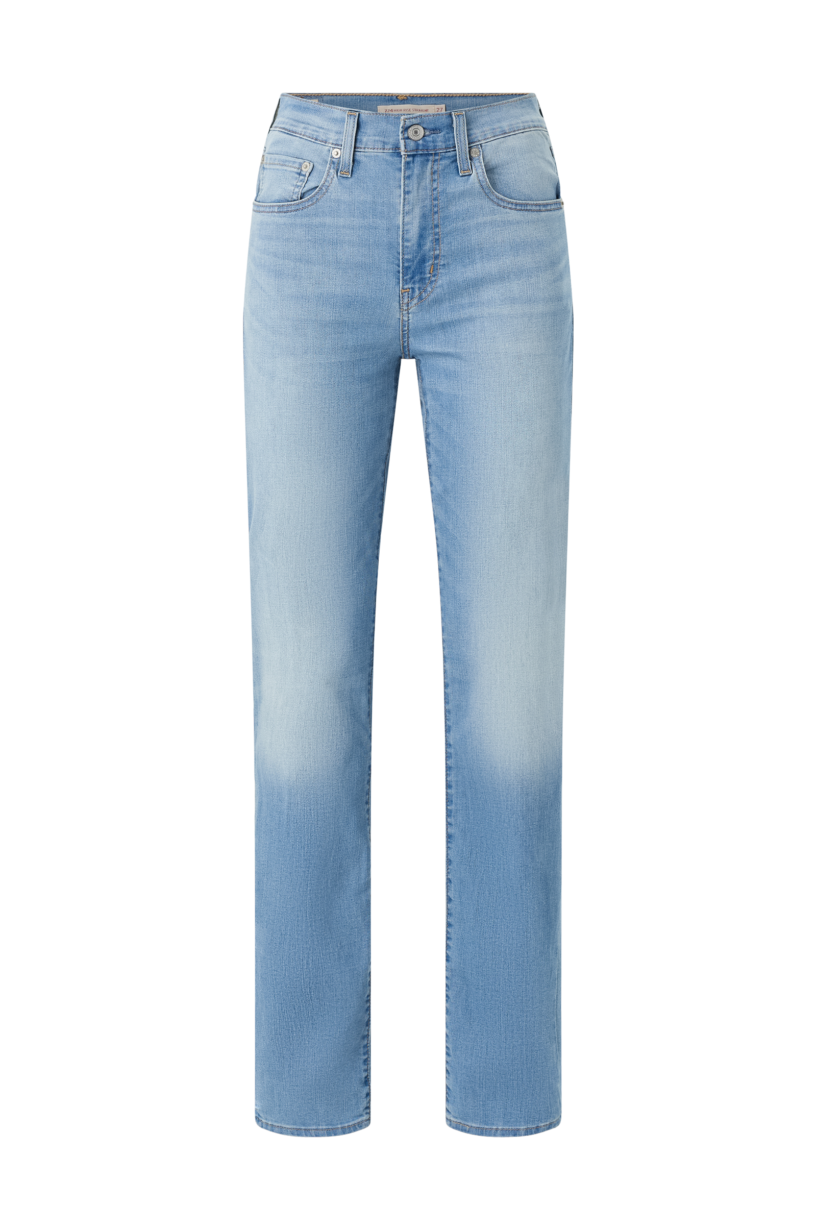Jeans 724 High Rise Straight fra Levi's. Flot, smal model med høj talje og smalle men lige ben. Linning med stropper og lynlås i gylpen samt tre lommer foran og to lommer bagpå.
